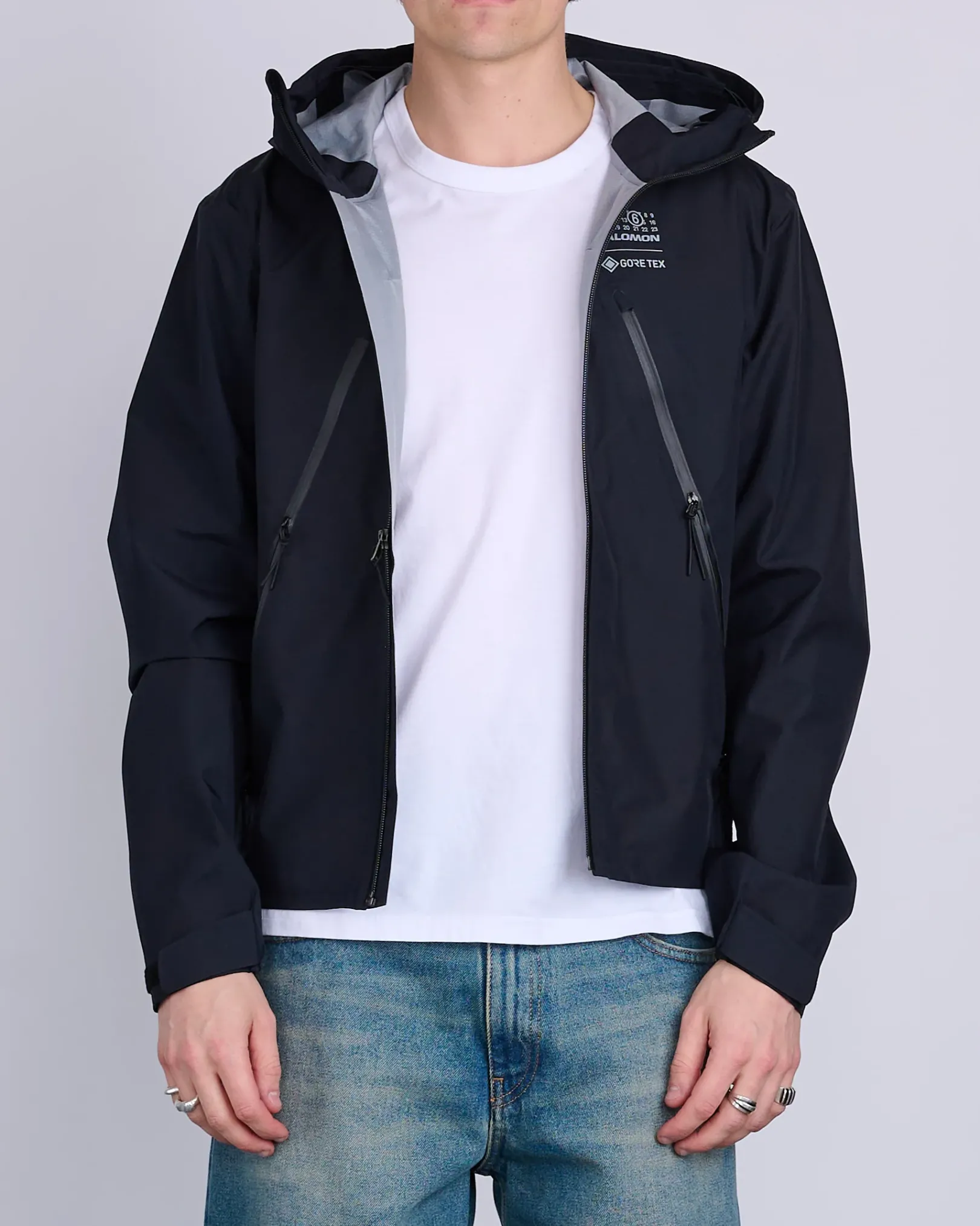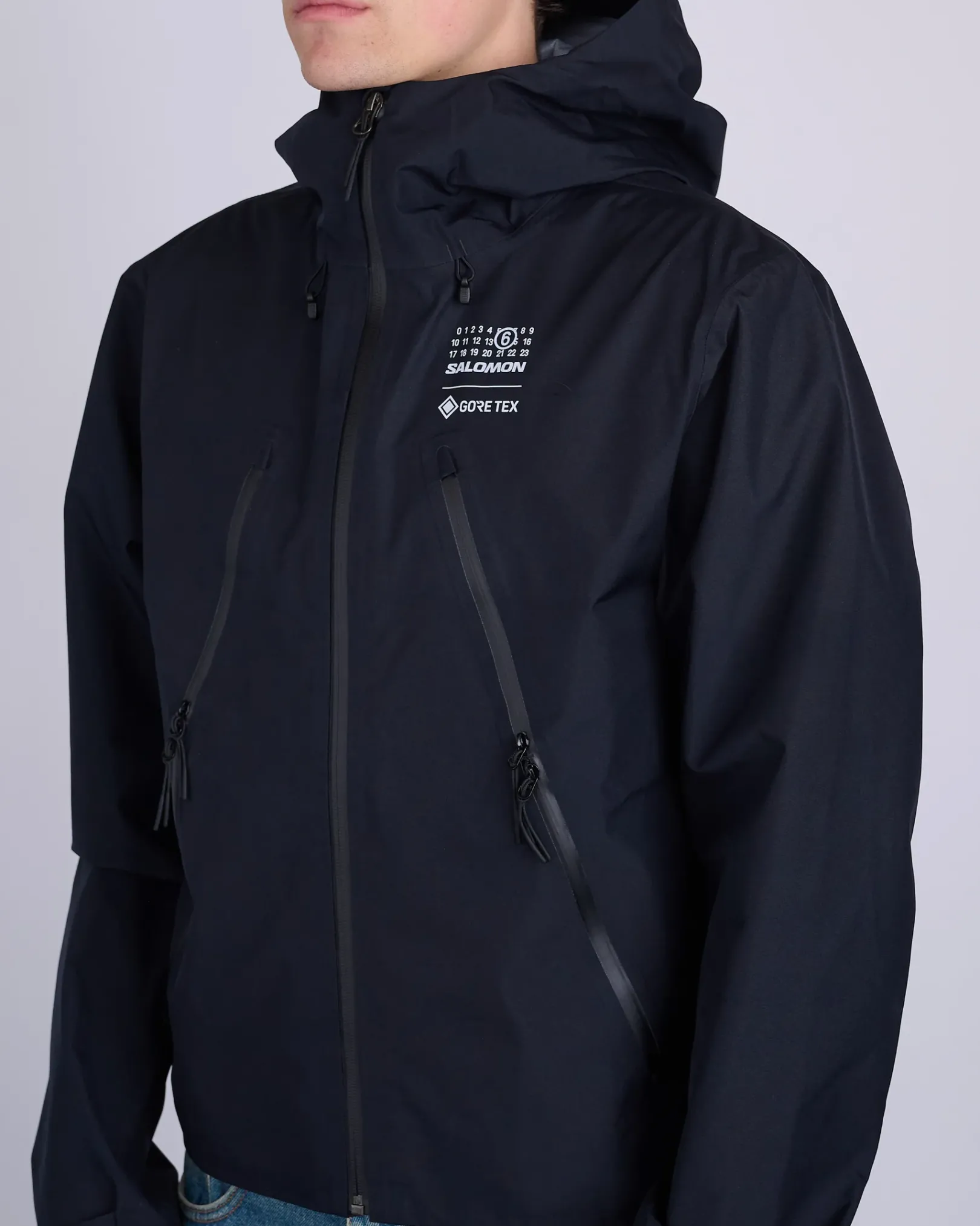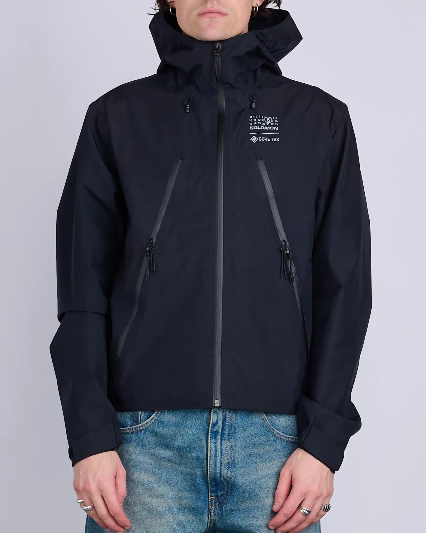 Engineered from breathable GORE-TEX fabric, this hooded sports jacket is cut to a loose sporty fit and is detailed by zip closure and zip pockets. The style also features the Salomon logo and the MM6 numeric signature at the front. MM6’s discreet yet distinct signature, a horizontal line of white stitches, is also found on the back of the garment.