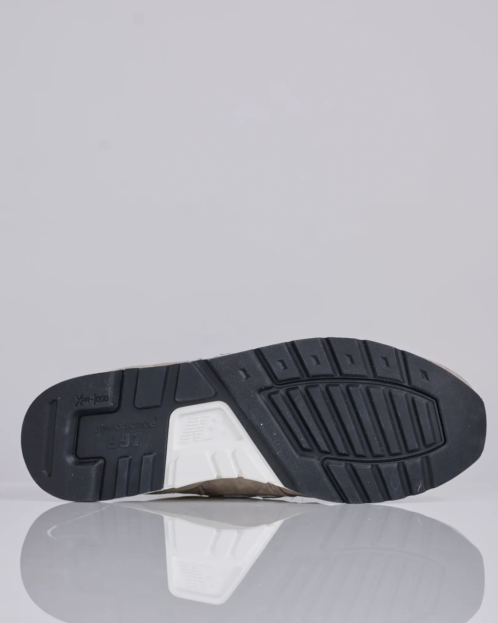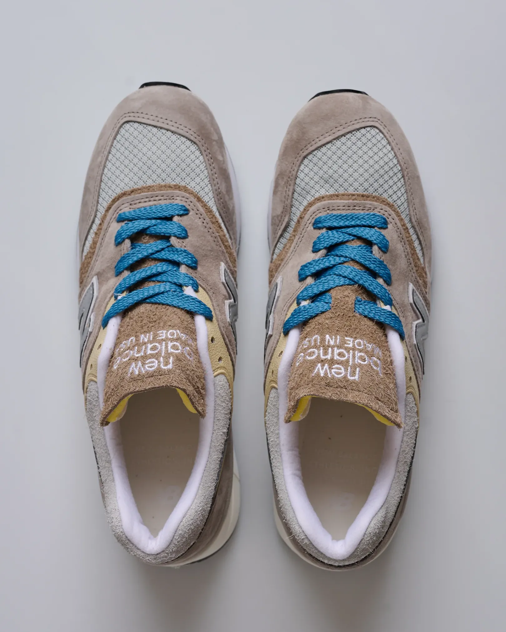 After making its first appearance in the Made in USA Seasonal Collection in Fall/Winter ’24, the iconic 997 returns for Spring/Summer ’25. The classic wedge-shaped silhouette, featuring a distinctive high set heel pad, is outfitted with premium suede, mesh, and hairy suede construction and features a sophisticated neutral palette of light mushroom and mirage grey.