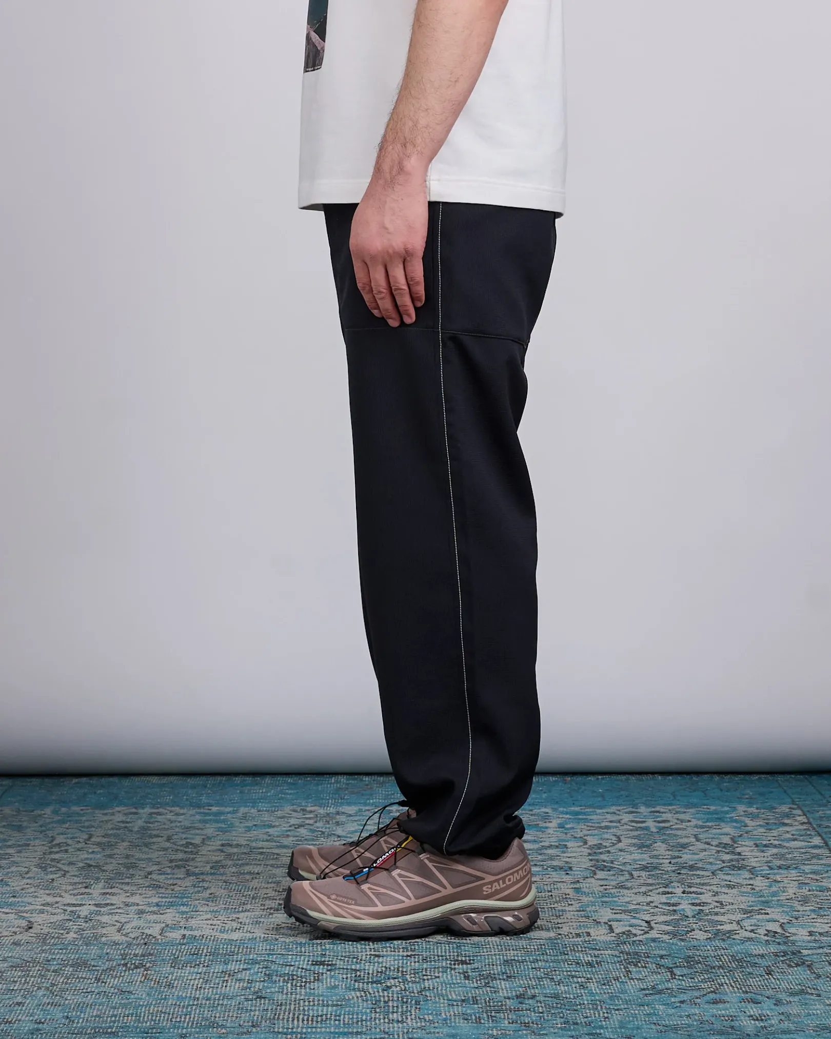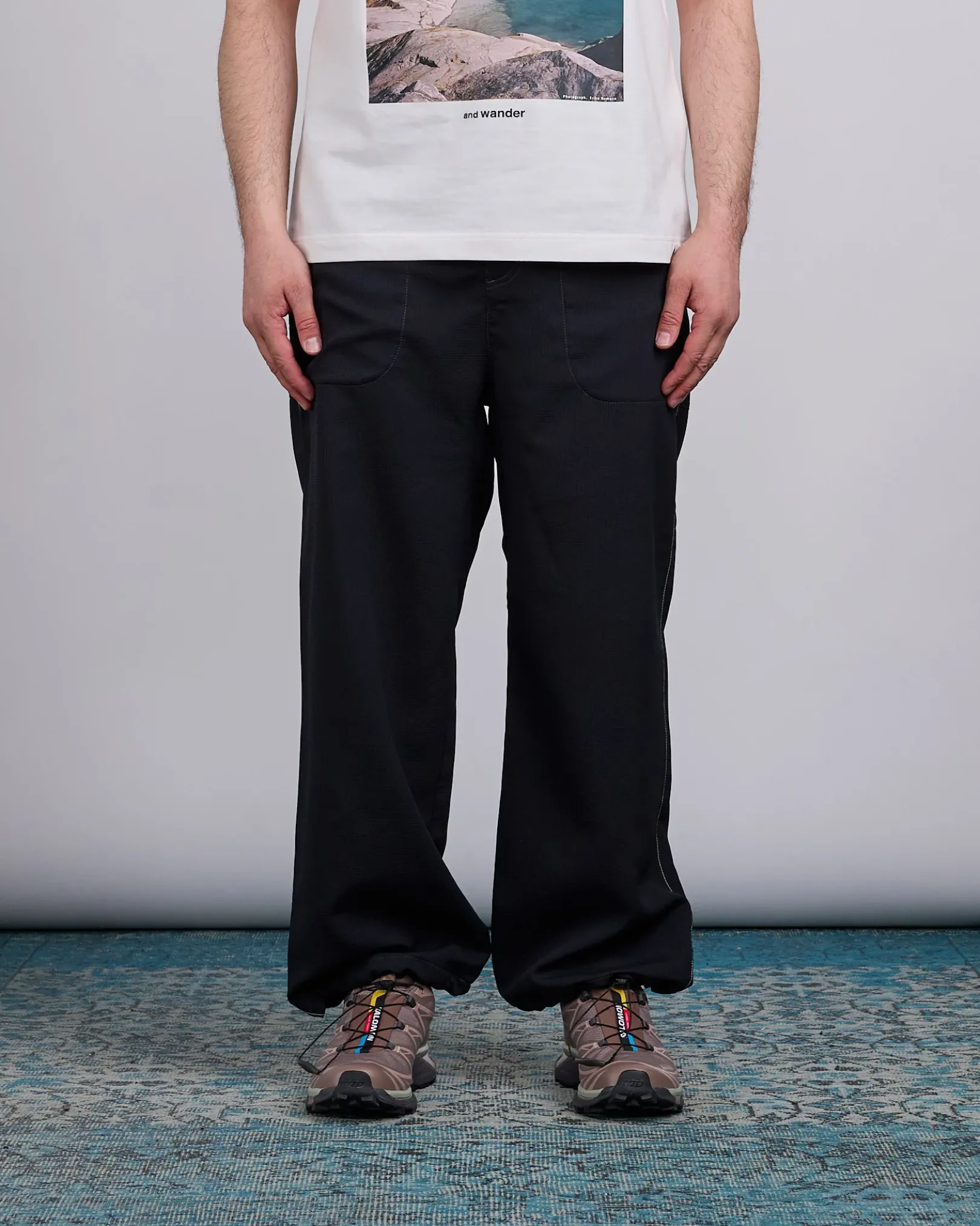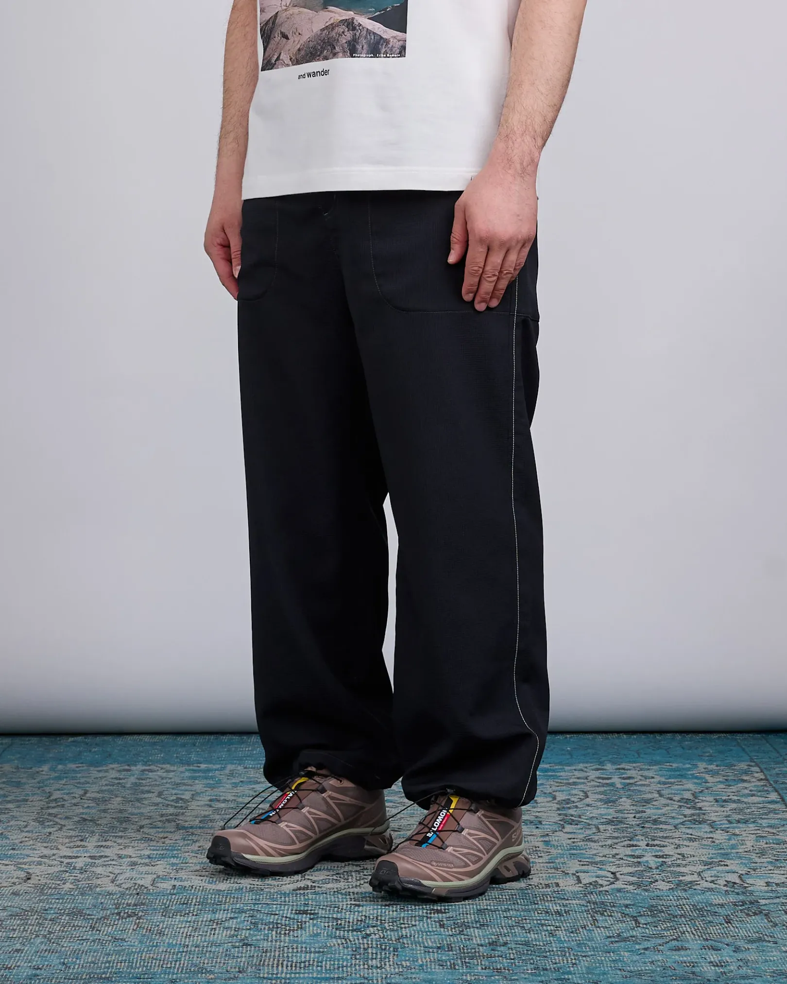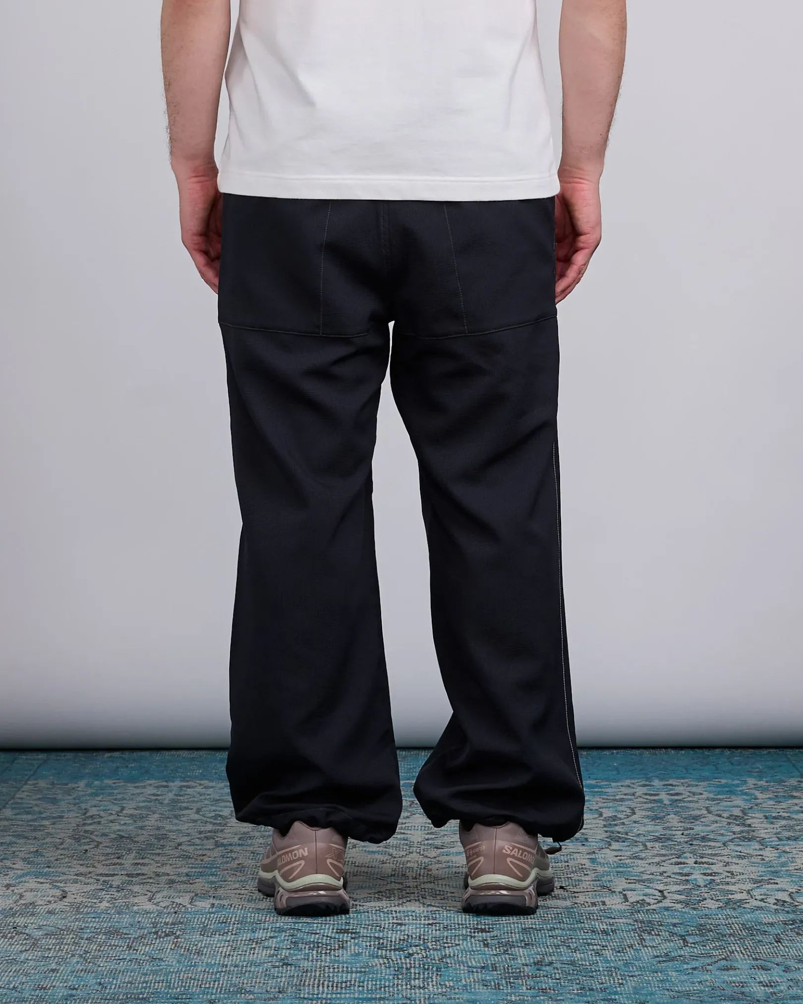 The Vent Nylon Pant in Black is designed for lightweight comfort and breathability, featuring an all-over ventilated waffle-textured polyester that minimizes skin contact and enhances airflow. These relaxed fit pants include an elasticated waistband with an integrated belt, drawstring-adjustable hems, and six-pocket styling for practical storage. Finished with embroidered branding on the back pocket, they’re ideal for warm-weather hikes or everyday wear.