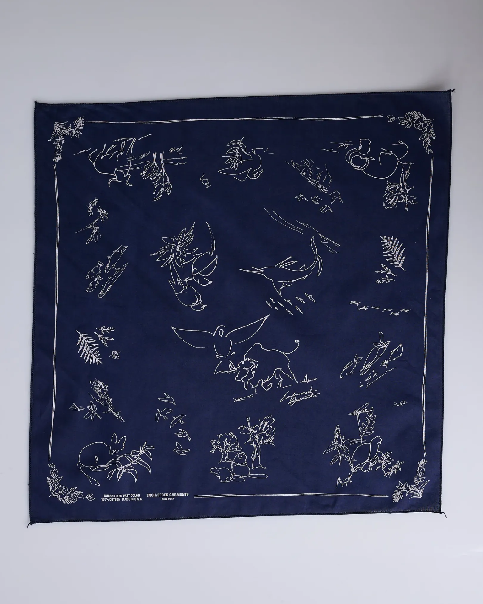The Printed Bandana by Engineered Garments offers its seasonal print. The graphic follows the hand-drawn works from Engineered Garments’ Spring/Summer 2025 collection.