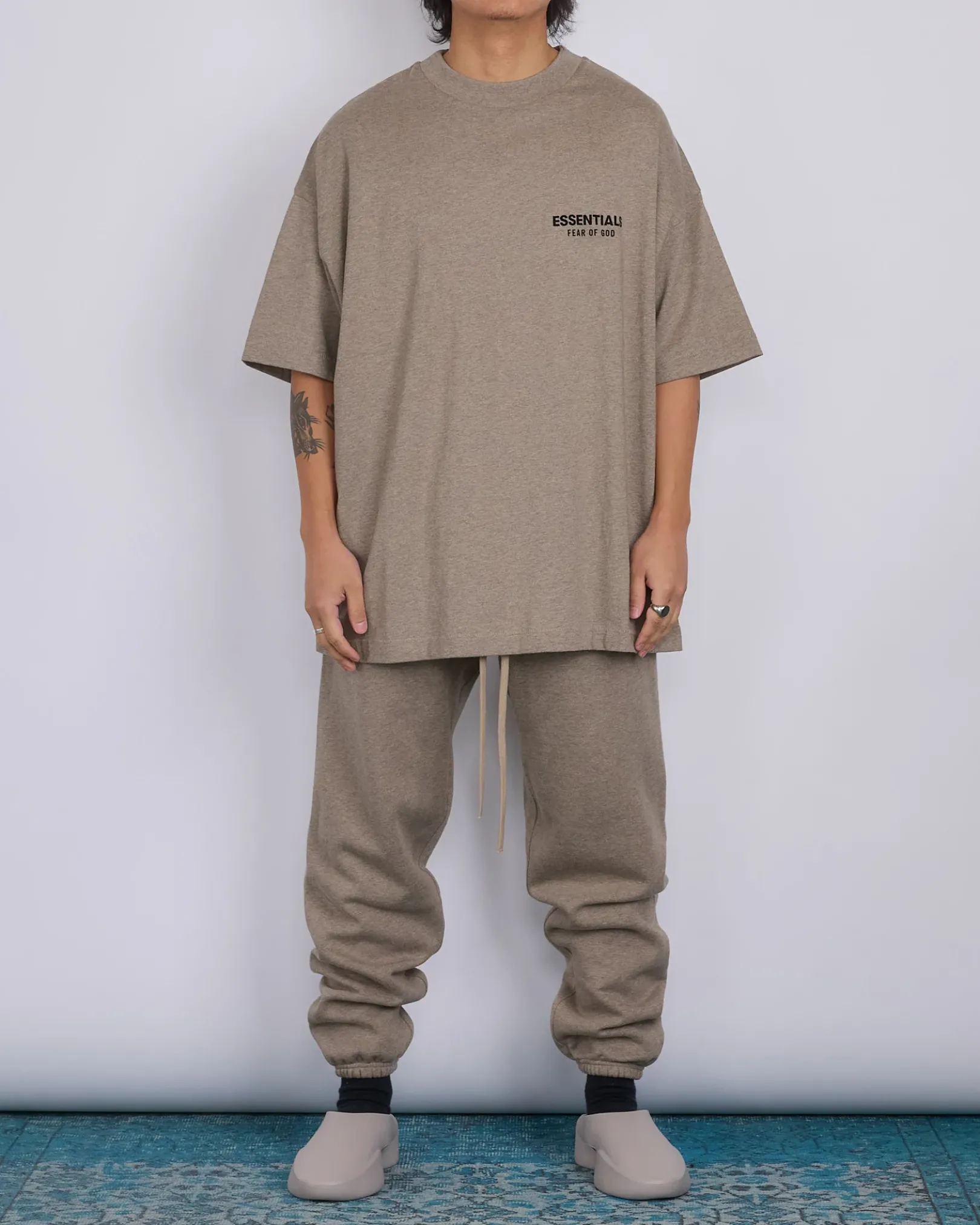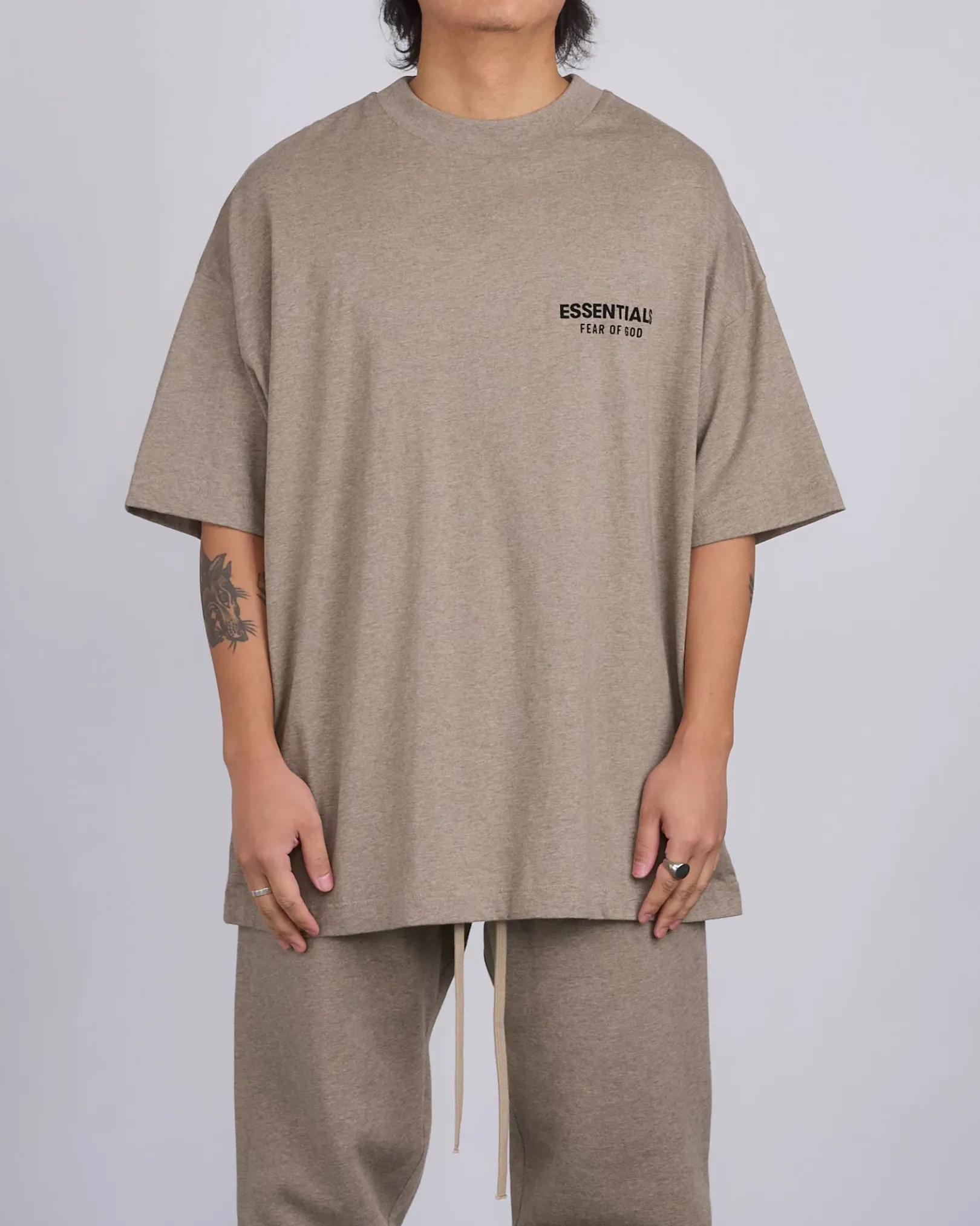 The Essentials Tee is made from core 100% cotton jersey. The rib-knit crewneck tee fits relaxed in the body with dropped shoulders. The signature “Essentials Fear of God” soft-touch logo returns on the chest and across the back, and Essentials Fear of God rubberized label is at the back collar.