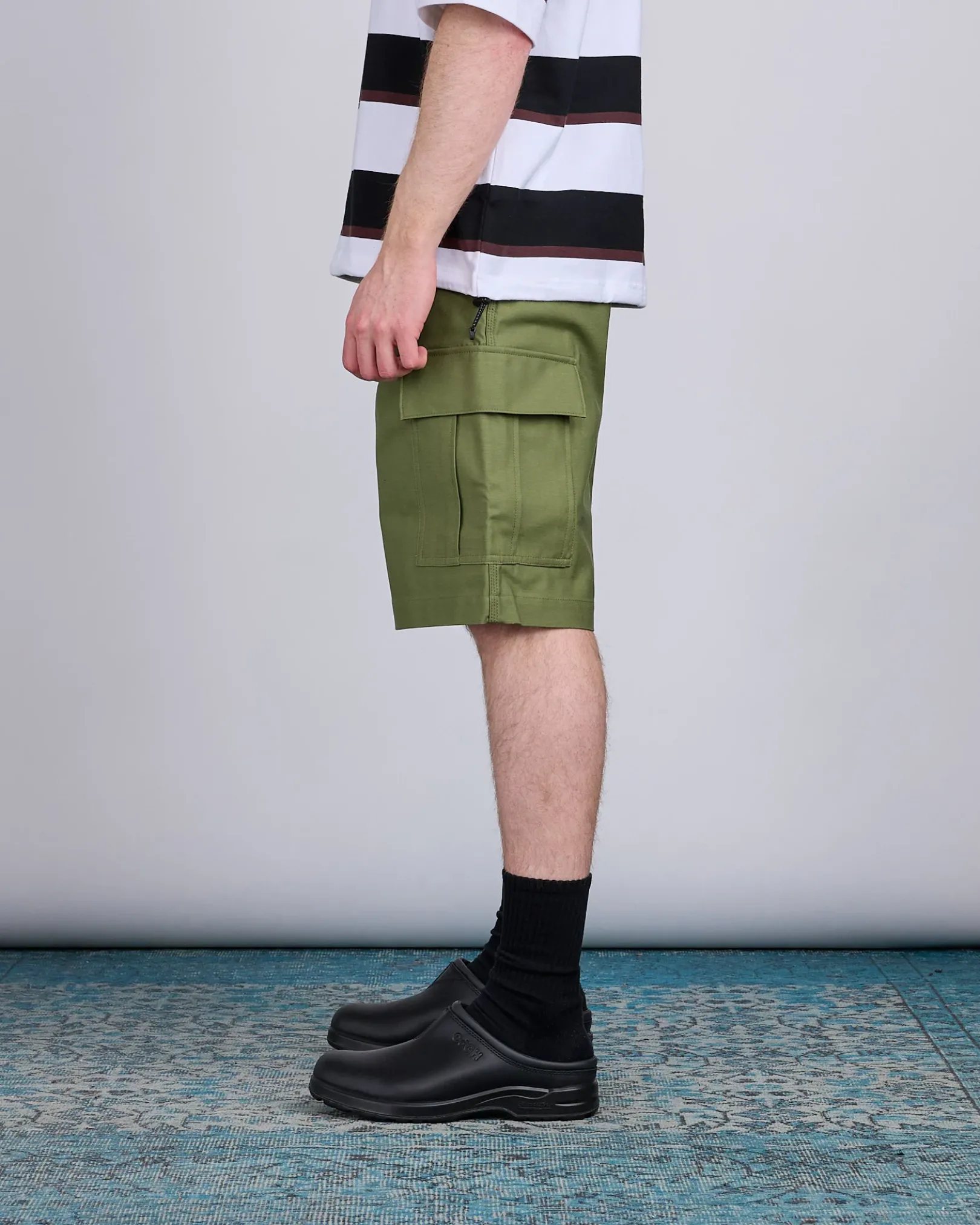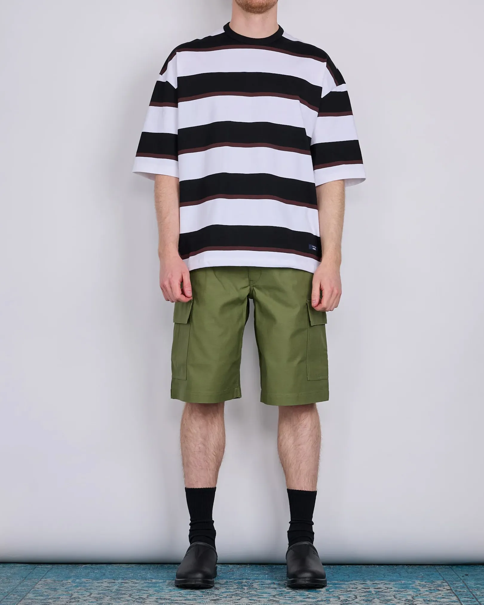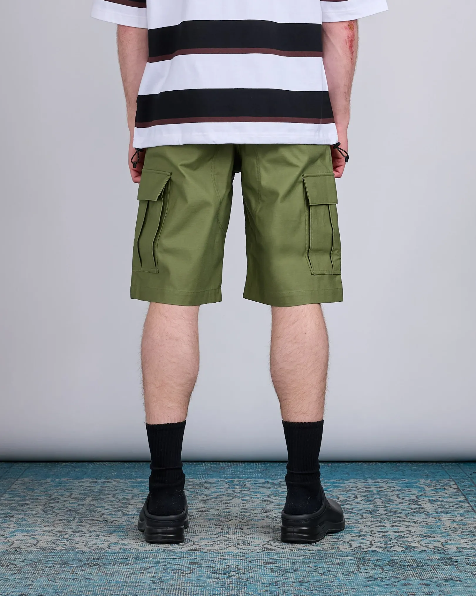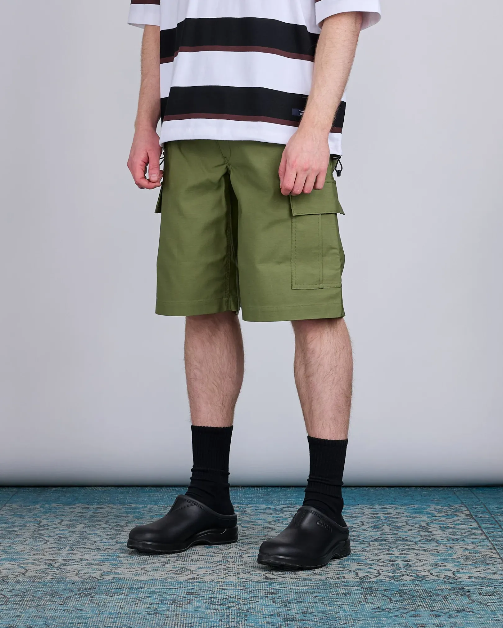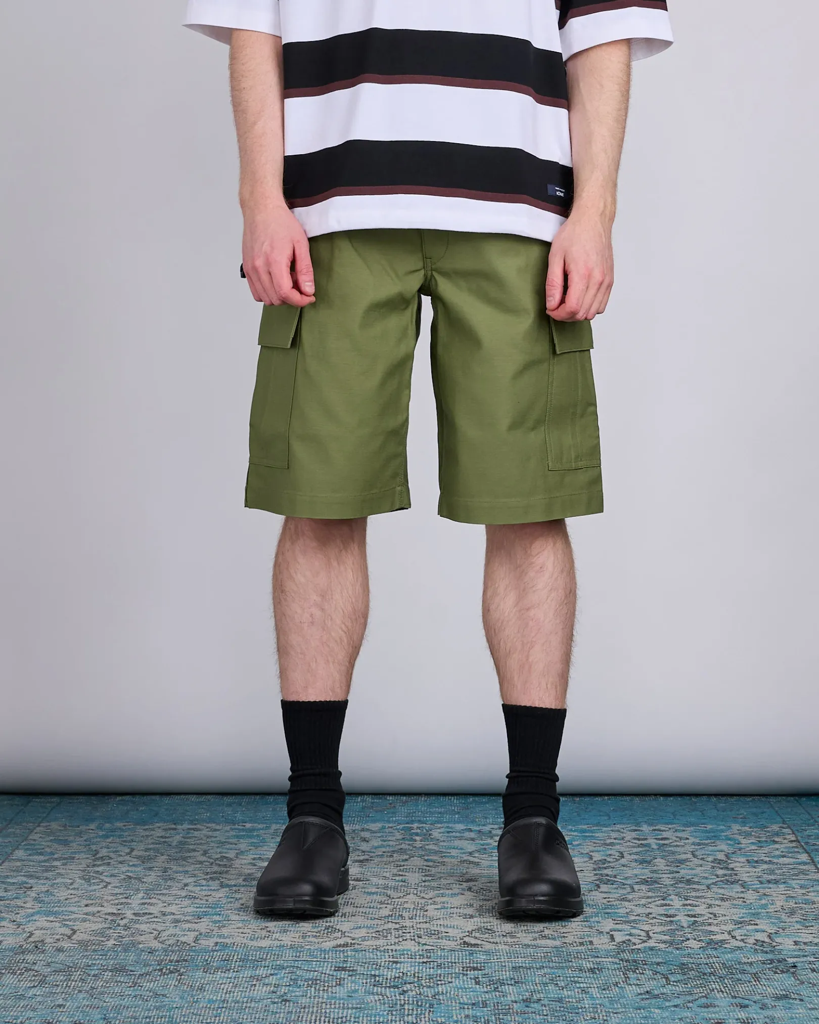 A functional collaboration with Carhartt Work in Progress, these cargo shorts from Junya Watanabe MAN blend rugged utility with elevated craftsmanship. Featuring classic cargo pockets, secure back flap pockets, and co-branded detailing, they offer a timeless regular fit ideal for everyday wear.