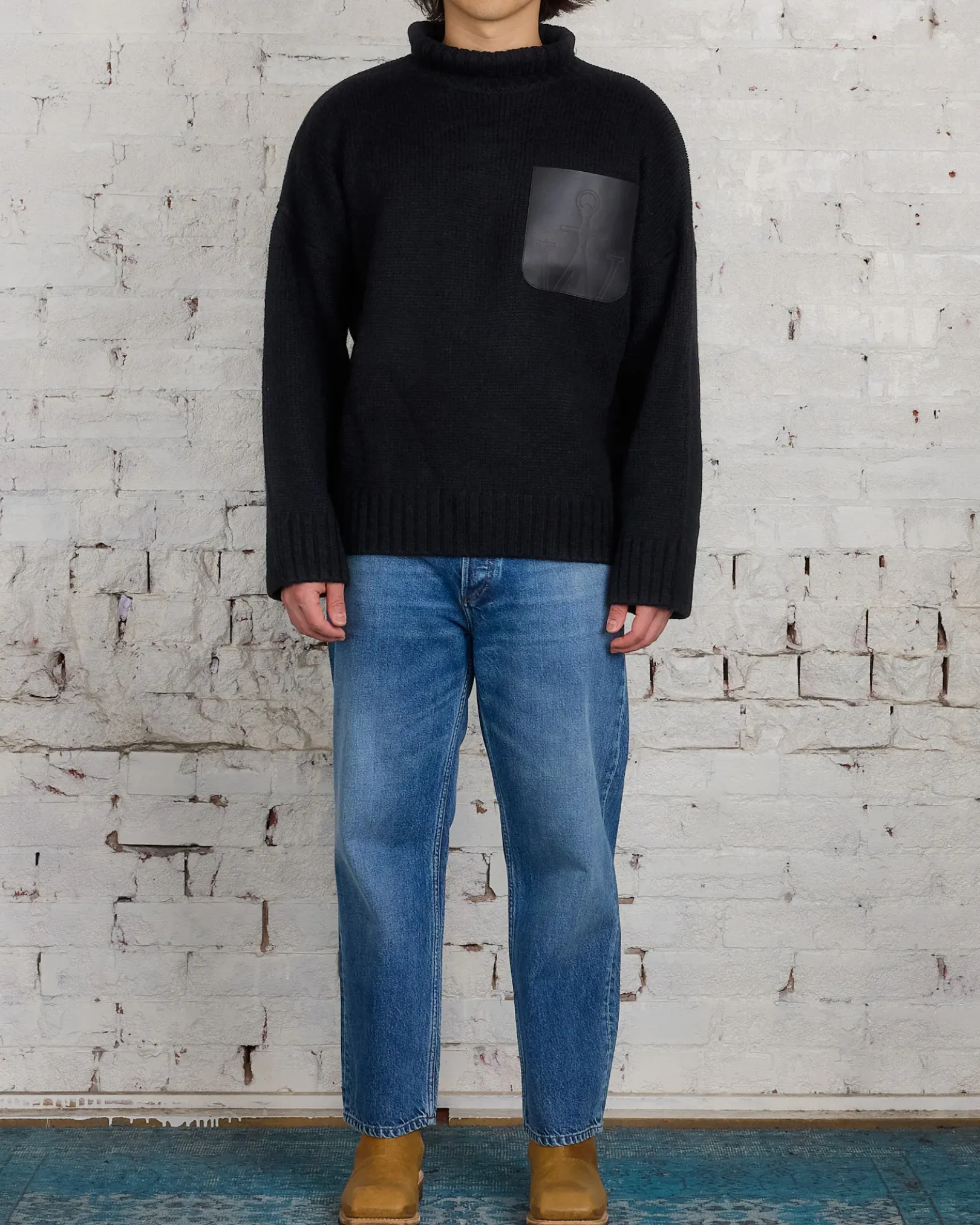 Fashion JW Anderson Leather Patch Pocket Turtleneck Sweater Black