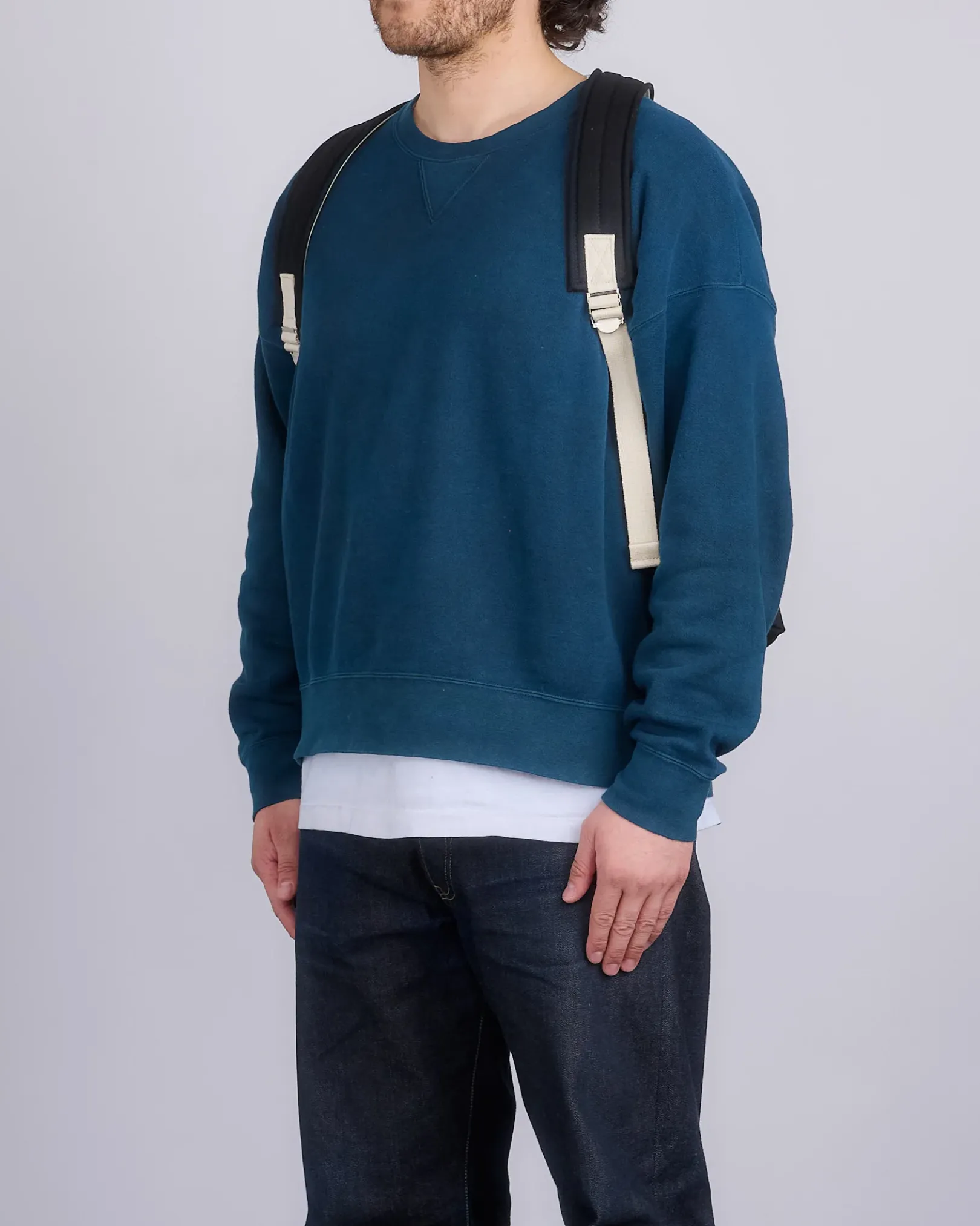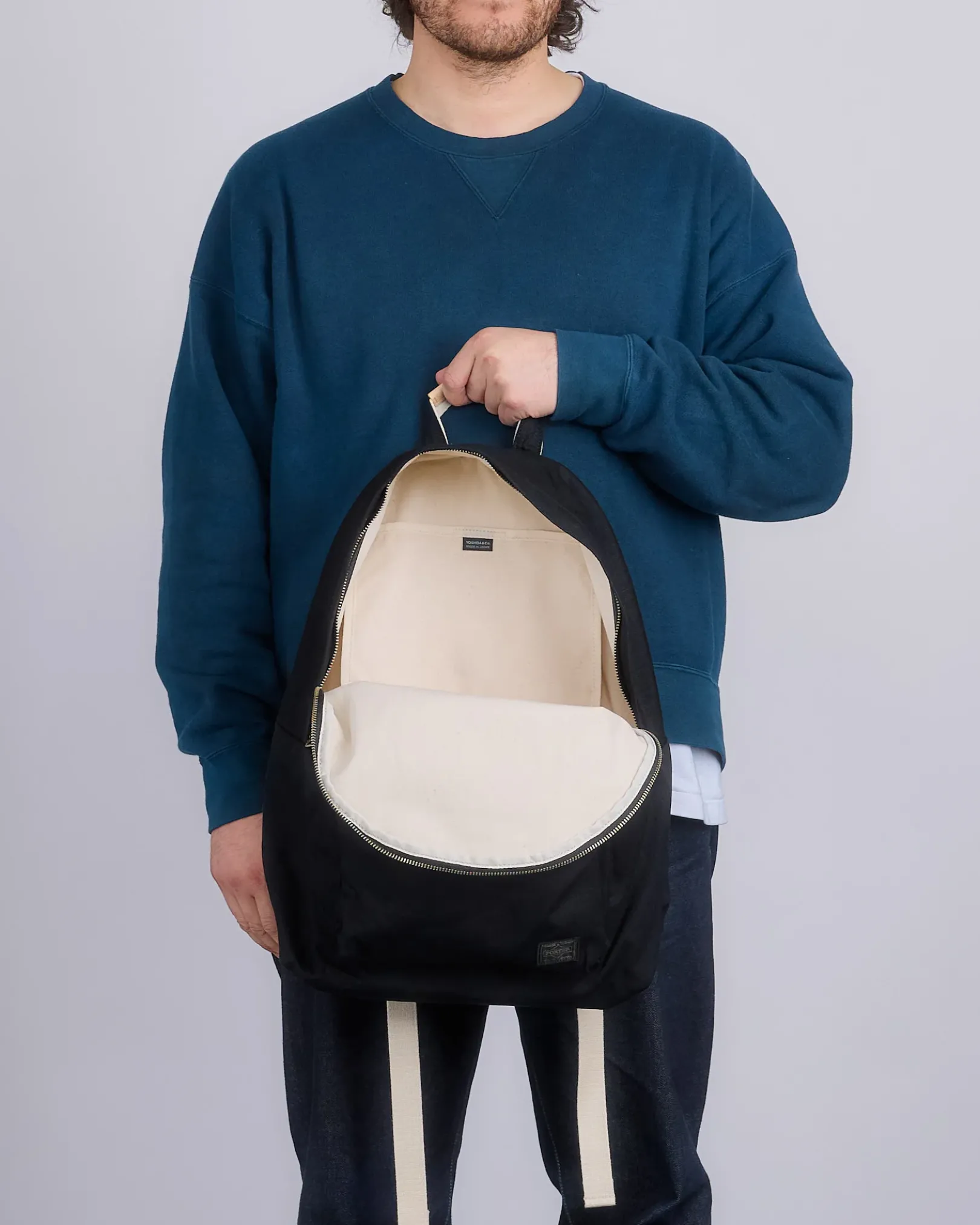 The NOIR Daypack is a minimalist, large-capacity backpack designed for versatility. Crafted from 10.75 oz black denim with a unique dual-dyed thread process, it develops a rich, fade-resistant patina over time. The interior features No. 11 off-white canvas, inspired by the clean look of classic denim pockets, for excellent visibility. With a spacious main compartment that fits A4 documents and additional front and interior pockets for essentials, this bag is both functional and timeless—perfect for daily use and ideal for denim enthusiasts.