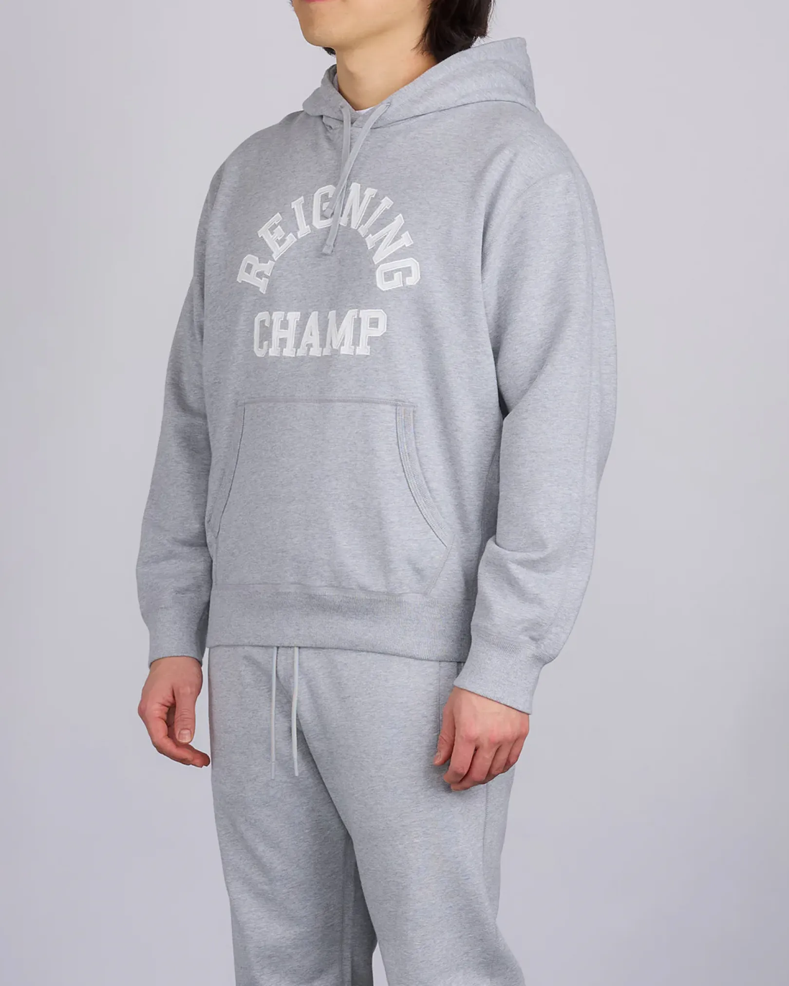 This standard-fit pullover hoodie is embroidered with Reigning Champ’s updated tackle twill arch logo. Featuring slightly relaxed shoulders, with full-cut sleeves and torso. Made from premium Midweight Terry for an ideal balance of comfort and structure. Designed with a dual-layer hood, a front pocket, premium rib, and signature flatlock construction.