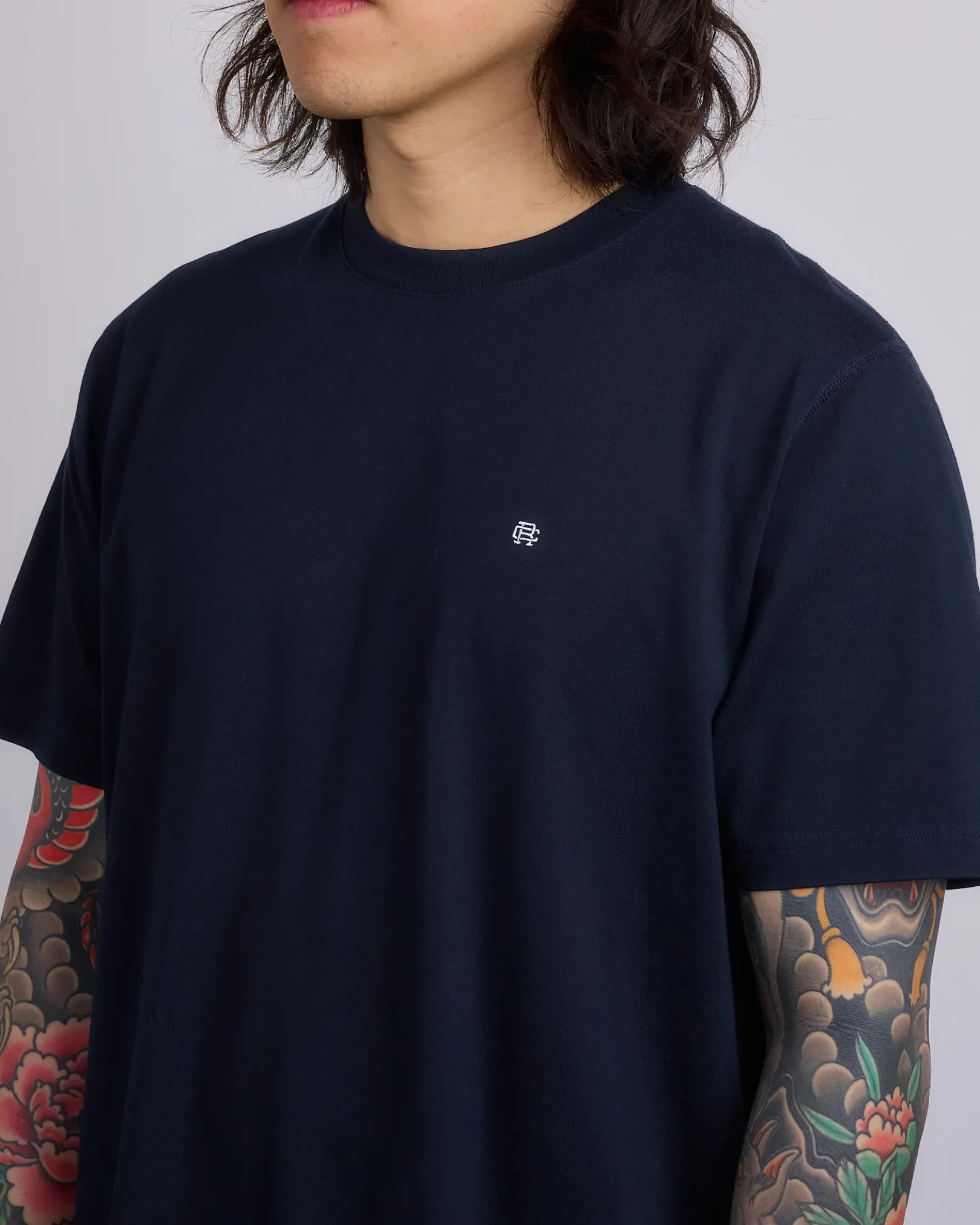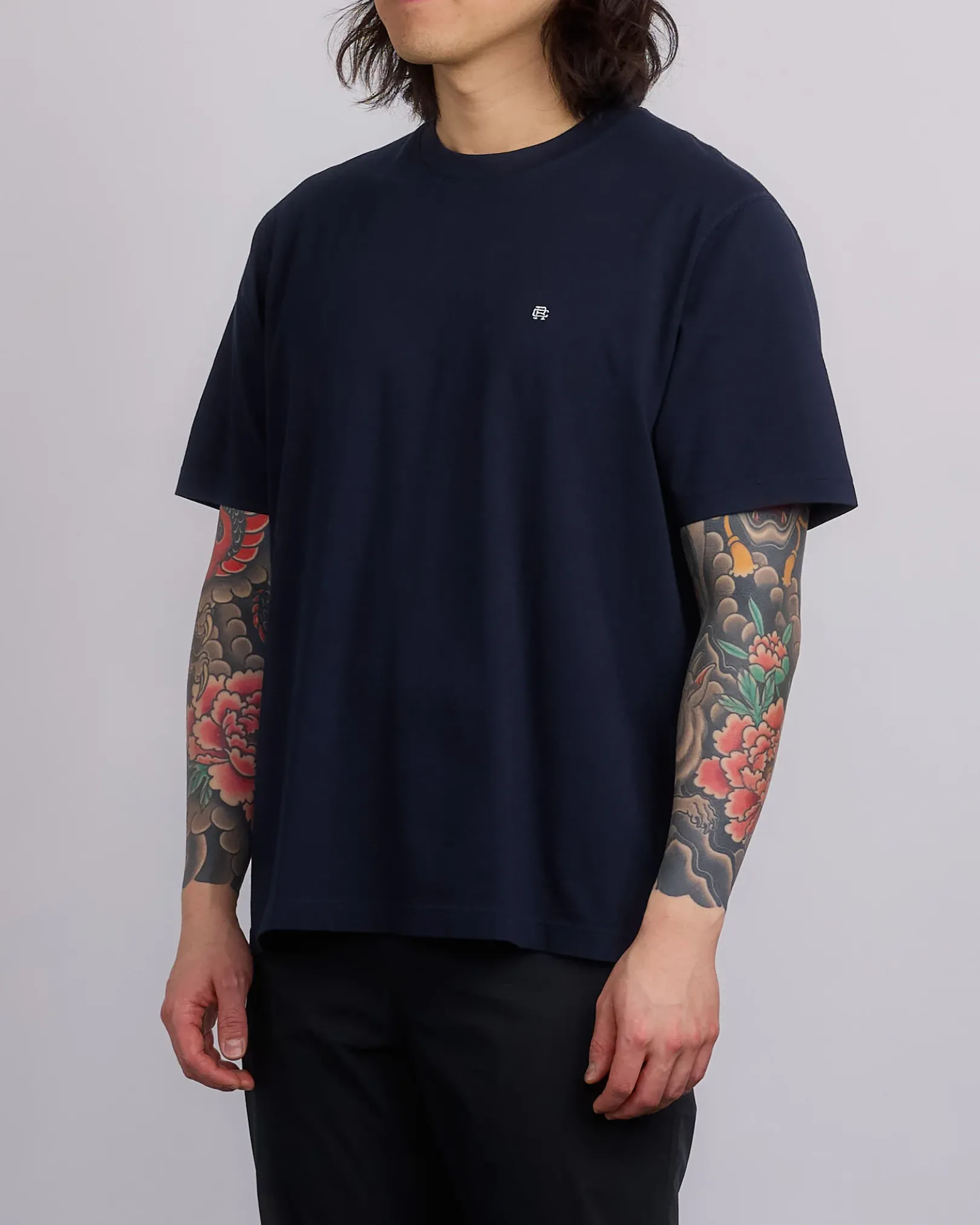 This short sleeve T-shirt is made from premium Midweight Jersey, featuring our embroidered logo lockup on the chest. Designed in the OG standard fit, with slightly dropped shoulders and a straight silhouette through the torso. Details include a rib collar, set-in sleeves, and signature flatlock construction.