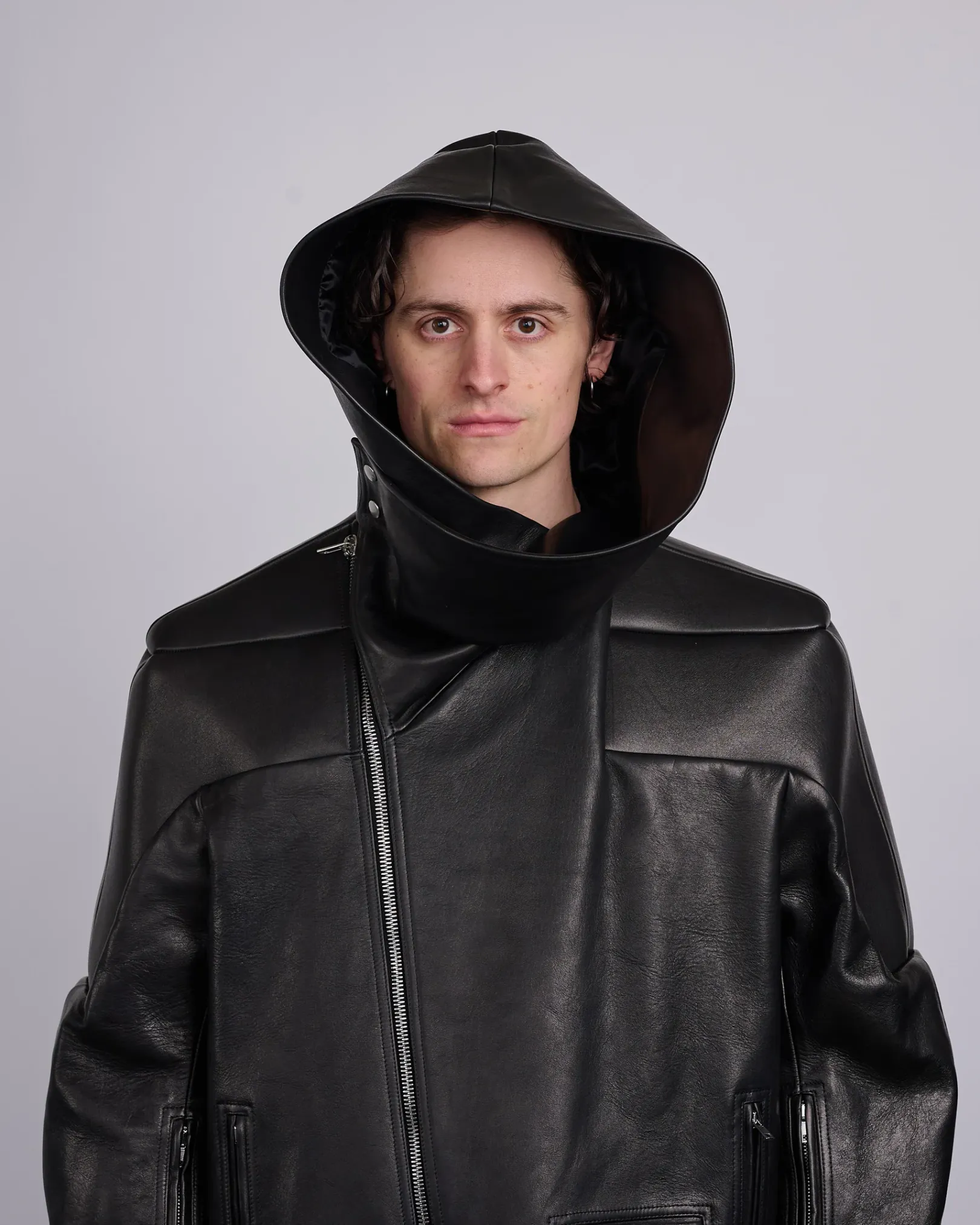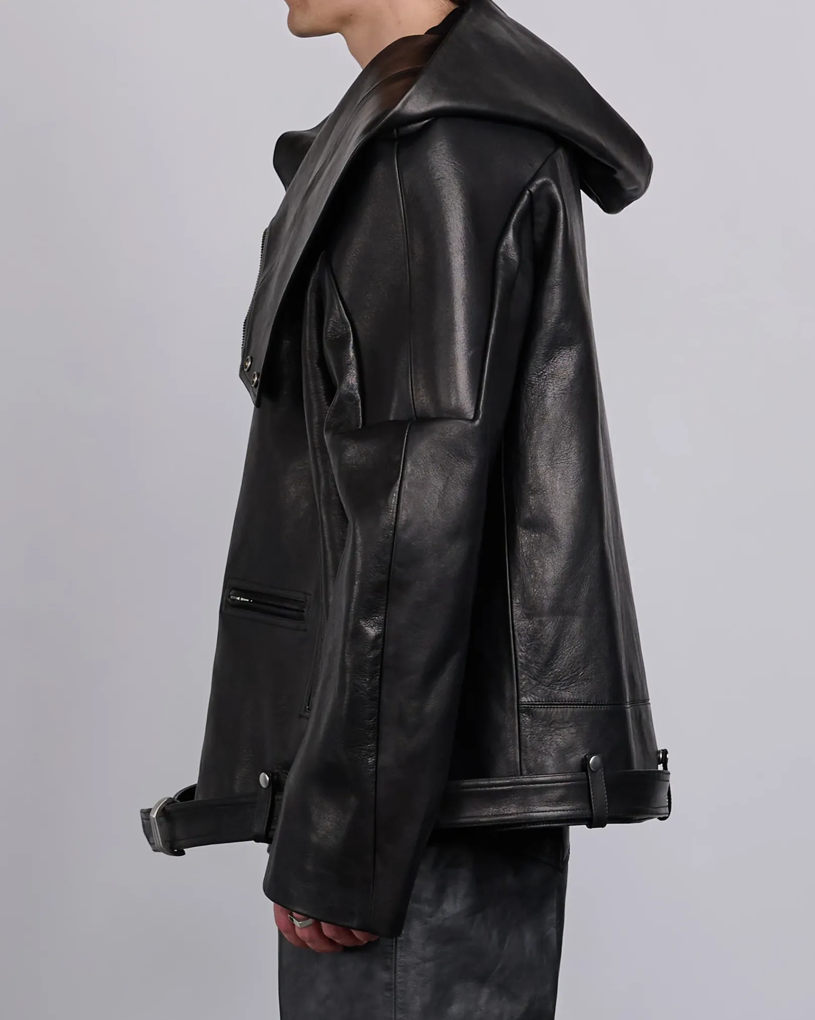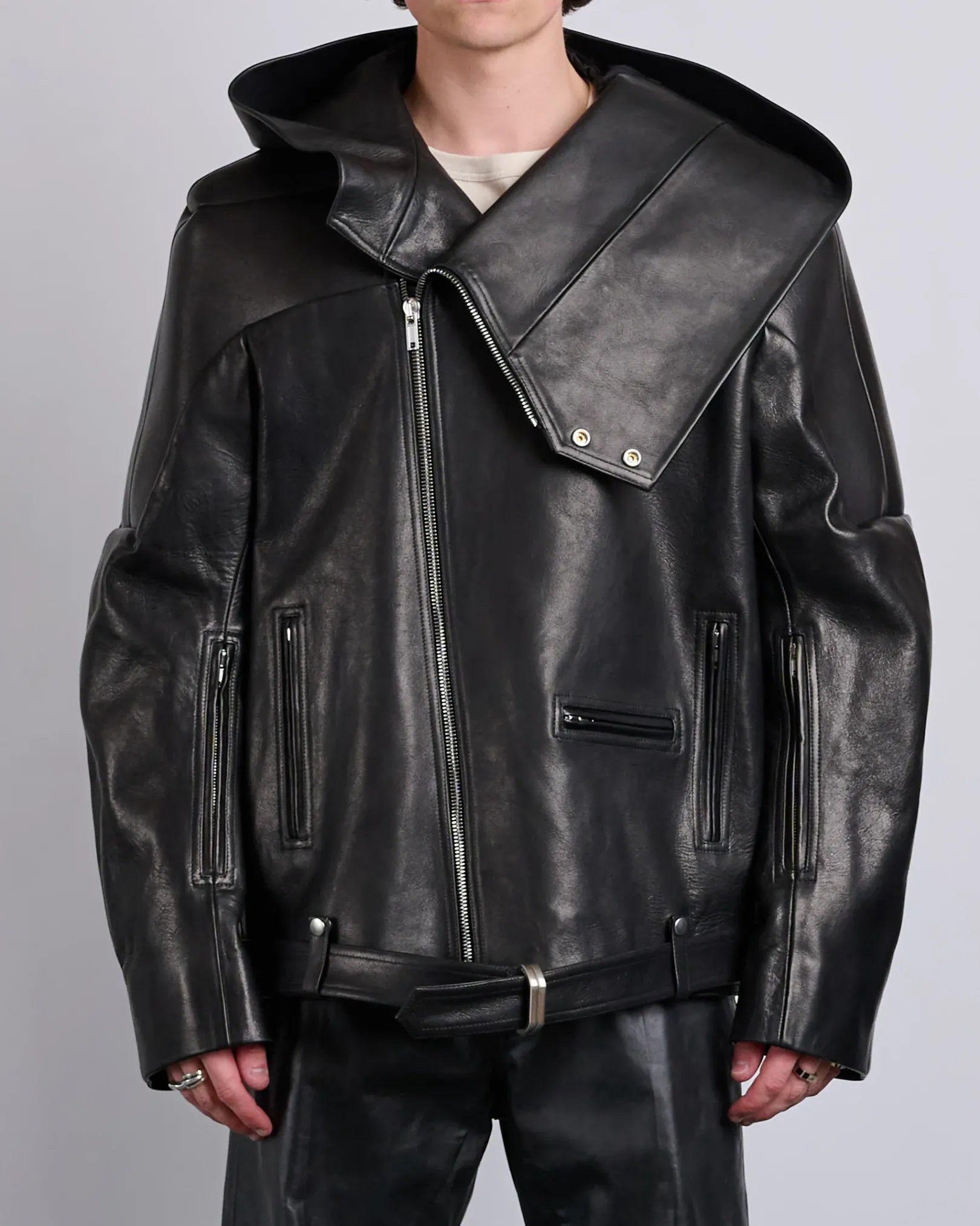 Rick Owens SS25 HOLLYWOOD runway cropped hooded stooges in spell leather parchment