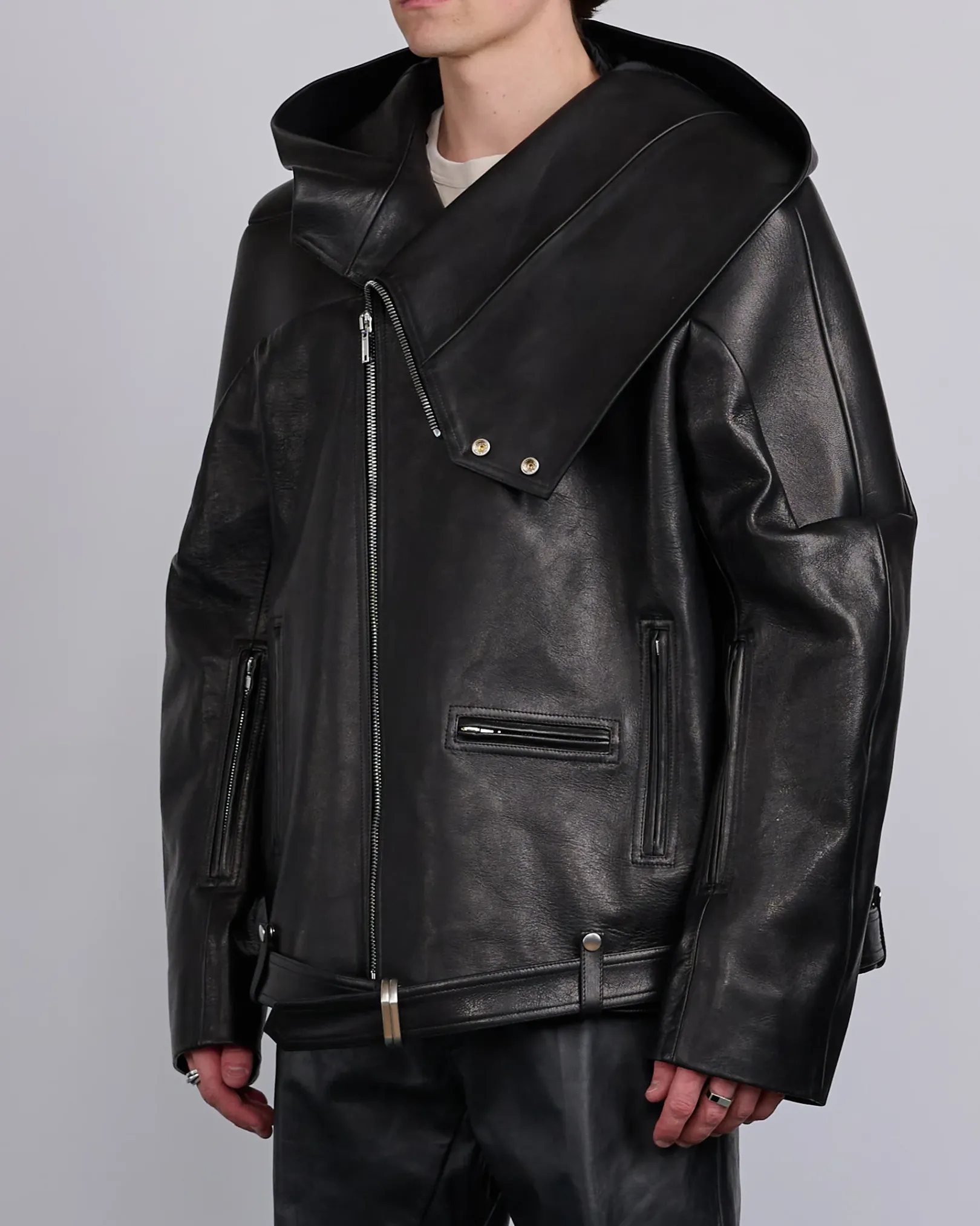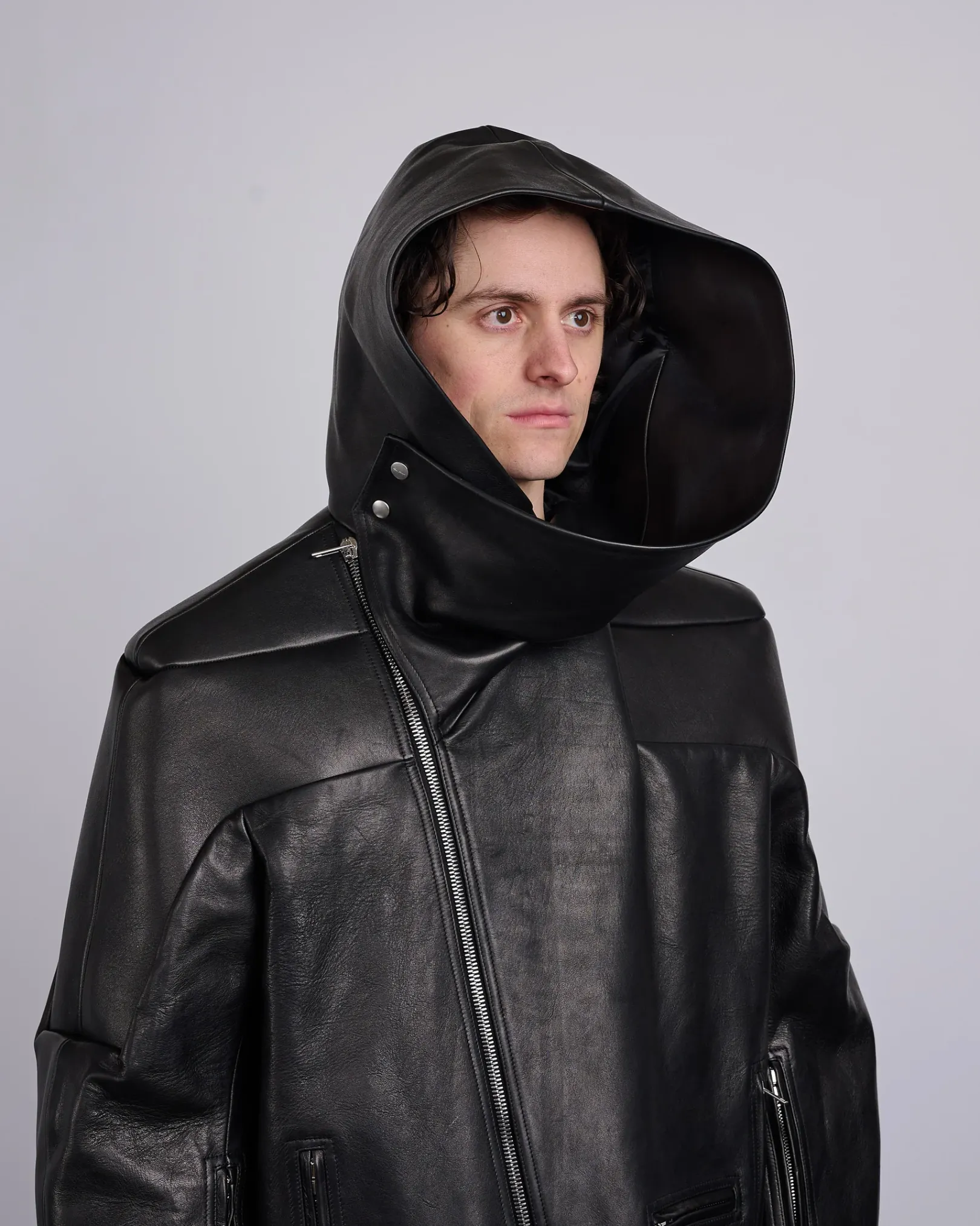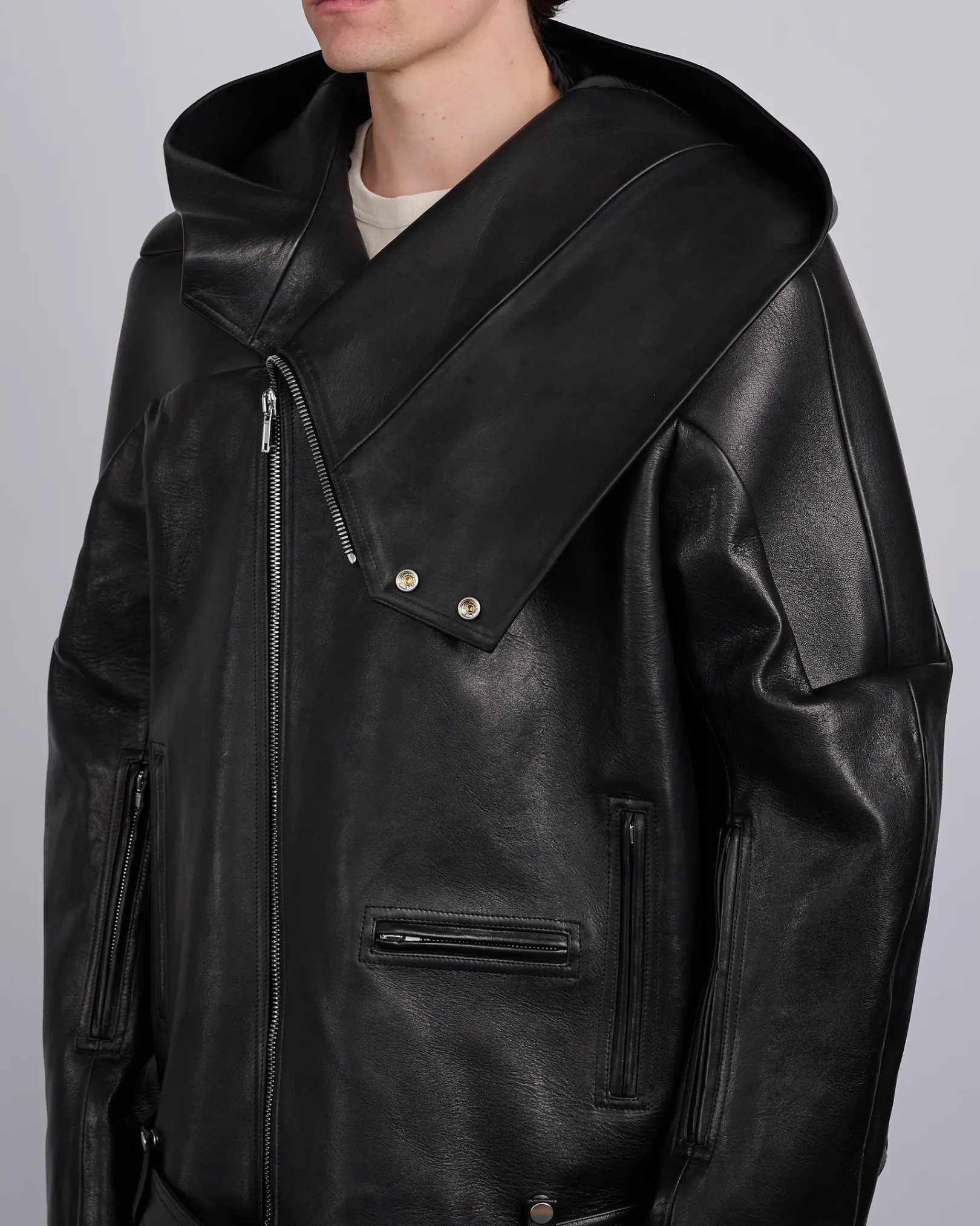 Rick Owens SS25 HOLLYWOOD runway cropped hooded stooges in spell leather parchment