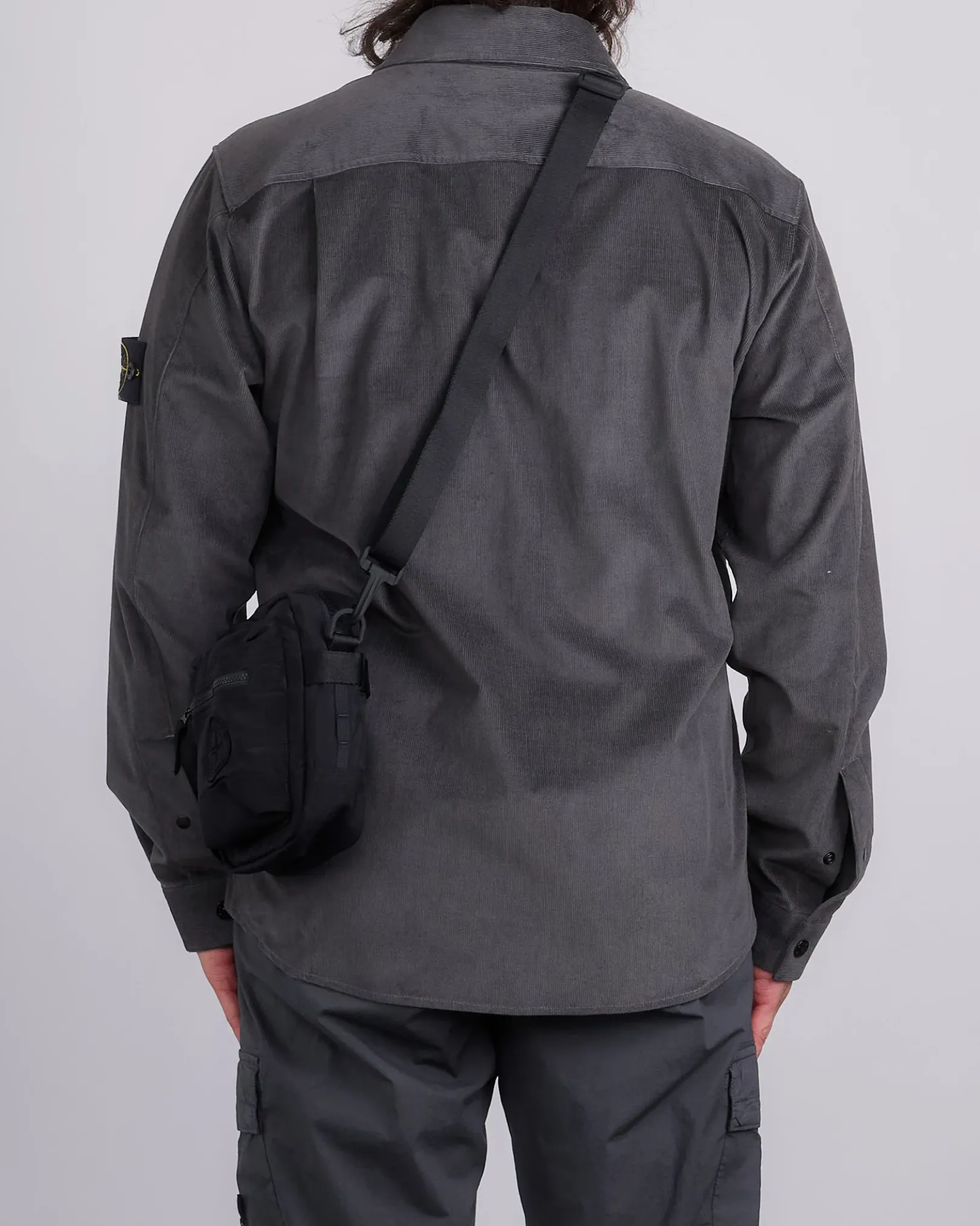 Front bellows pocket with horizontal zipper fastening featuring raised embroidery of Stone Island Compass logo. Bottom reinforced in heavy duty nylon. Horizontal nylon strap on back with embroidery of the Stone Island lettering. Horizontal pocket inside with zipper fastening. Top zipper fastening. Adjustable shoulder strap to be worn either on the shoulder or across the body.