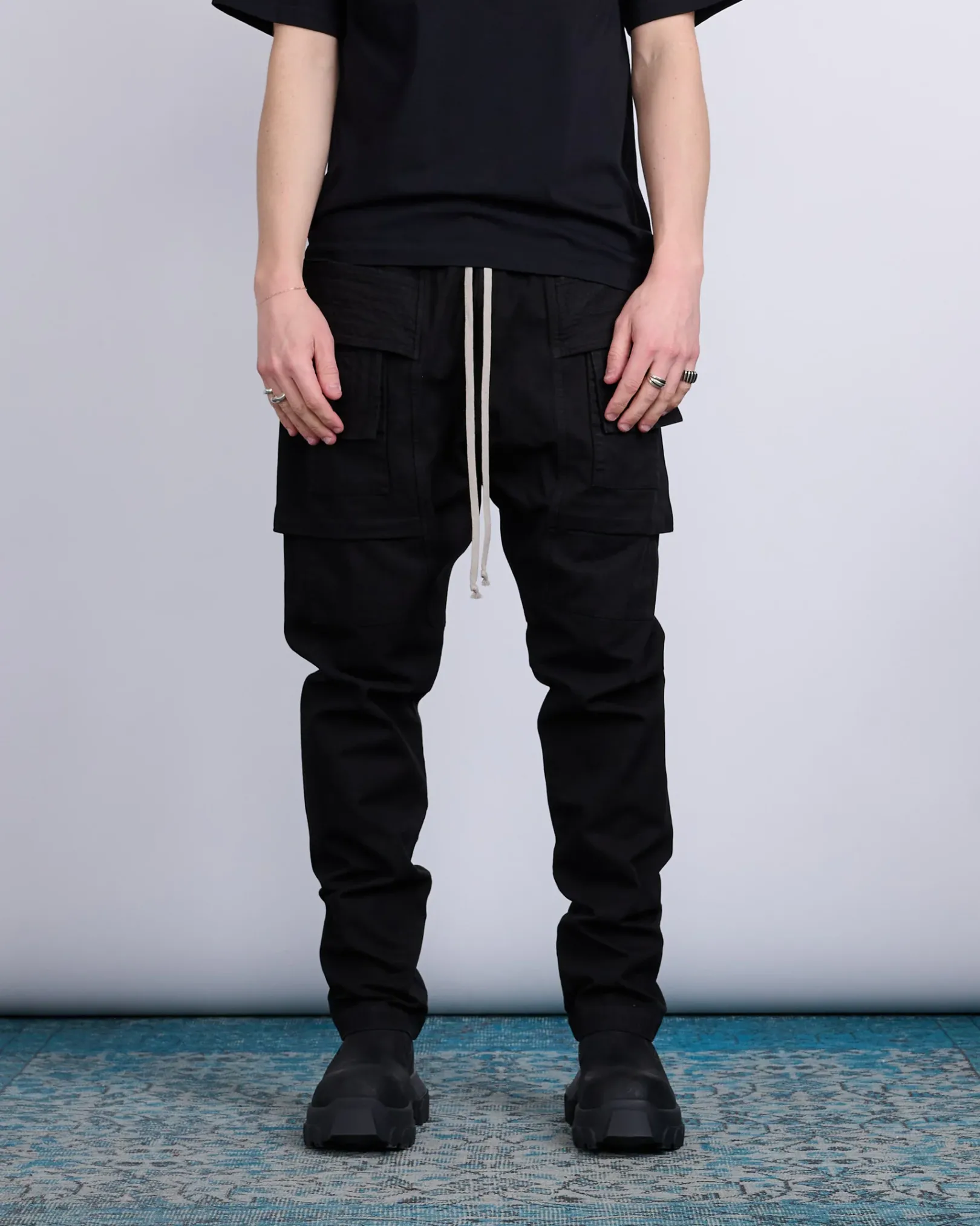 DRKSHDW SS25 HOLLYWOOD creatch cargo drawstring in black cotton canvas