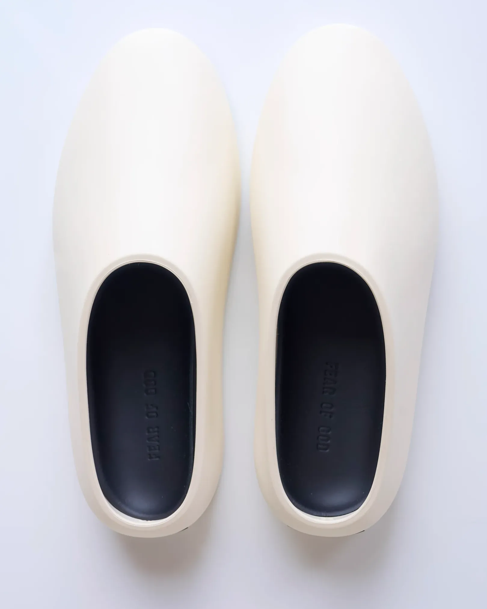 Crafted in Italy, the redesigned California exhibits a strong sculpted profile with elevated details, such as a removable Fear of God debossed leather insole for comfort and a contrasting black rubber sole for durability. The new style features a denser Extrabounce foam to create a more substantial footwear proposition. Minimalist branding is evident in the black rubberized Fear of God label on the heel.