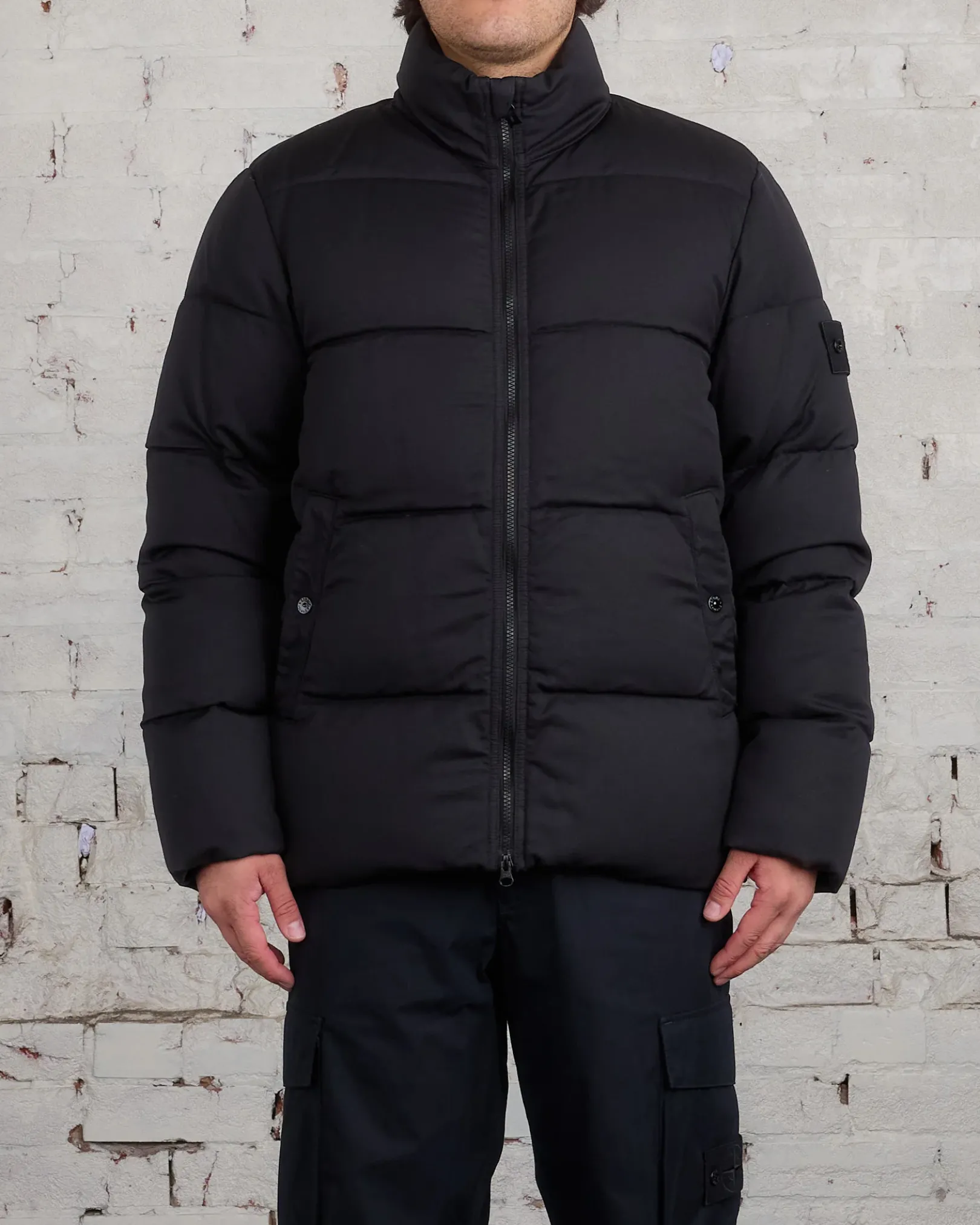 Standing collar. Slanting hand pockets with snap fastening. Stone Island Ghost badge on the left sleeve. Inner ribbed cuffs. Two-way zipper fastening.