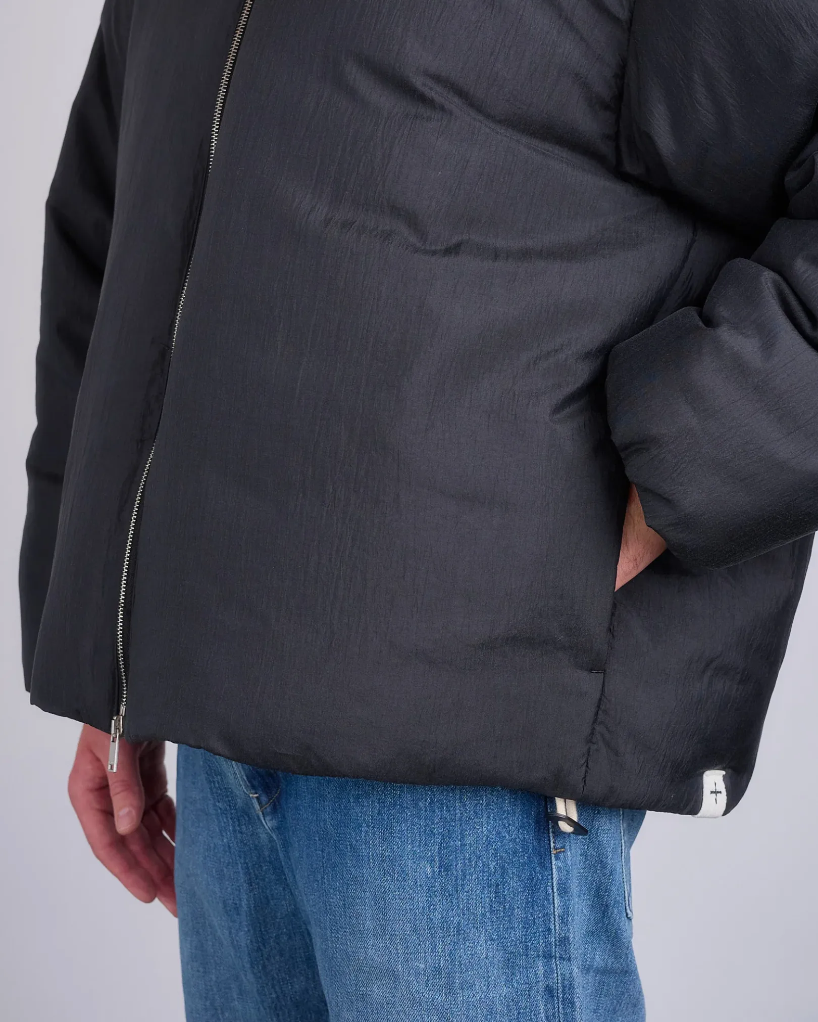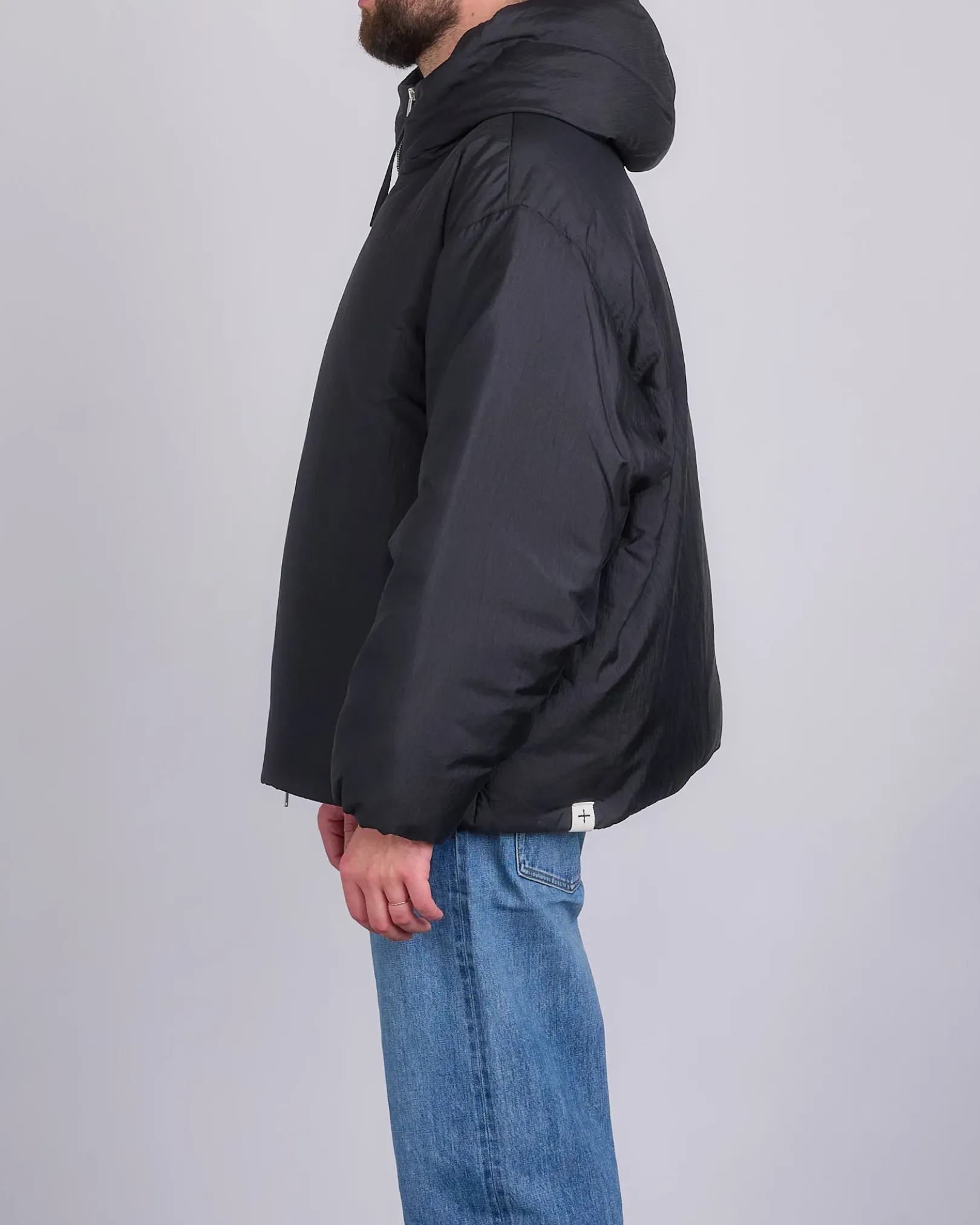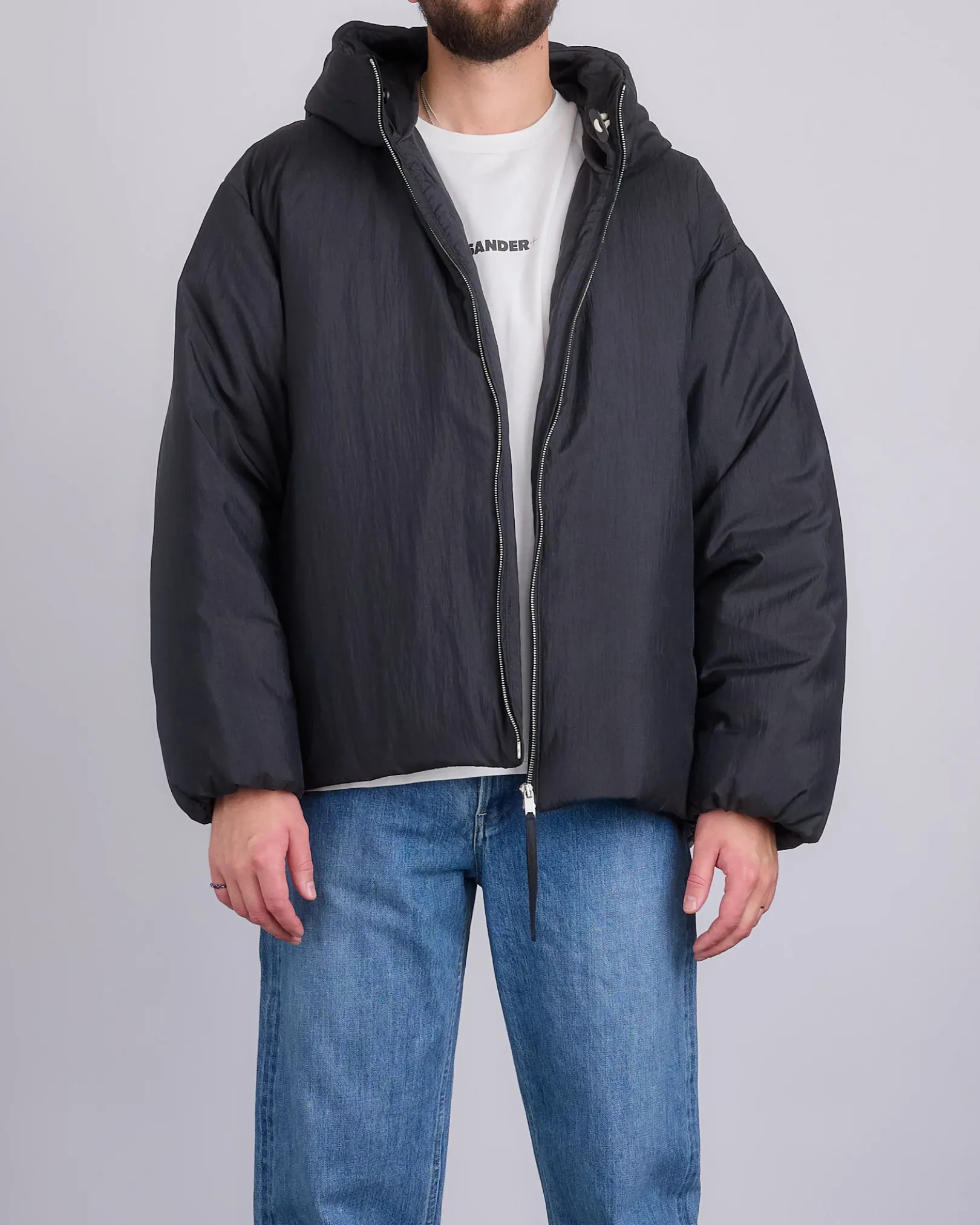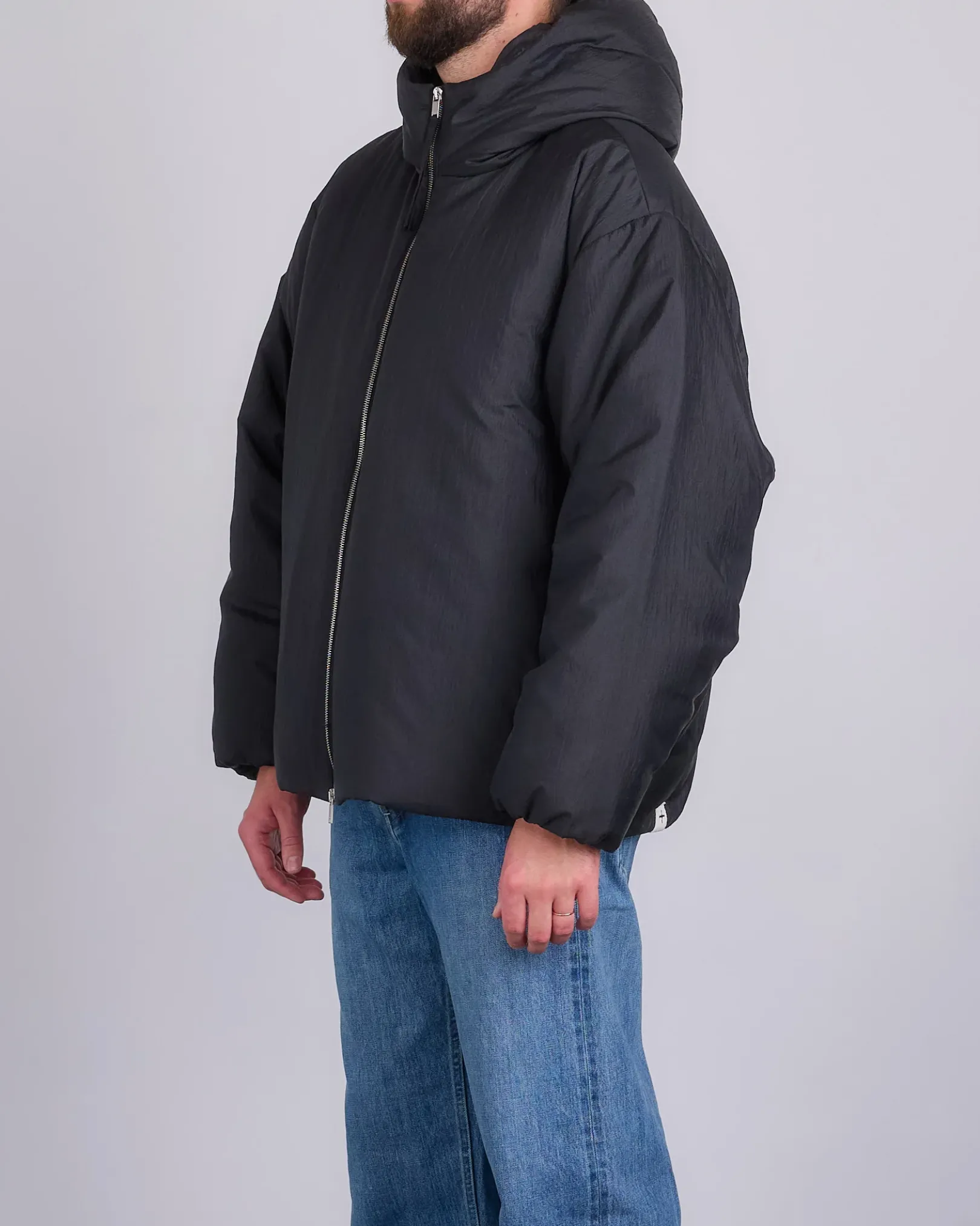 Hooded recycled silk/nylon down jacket