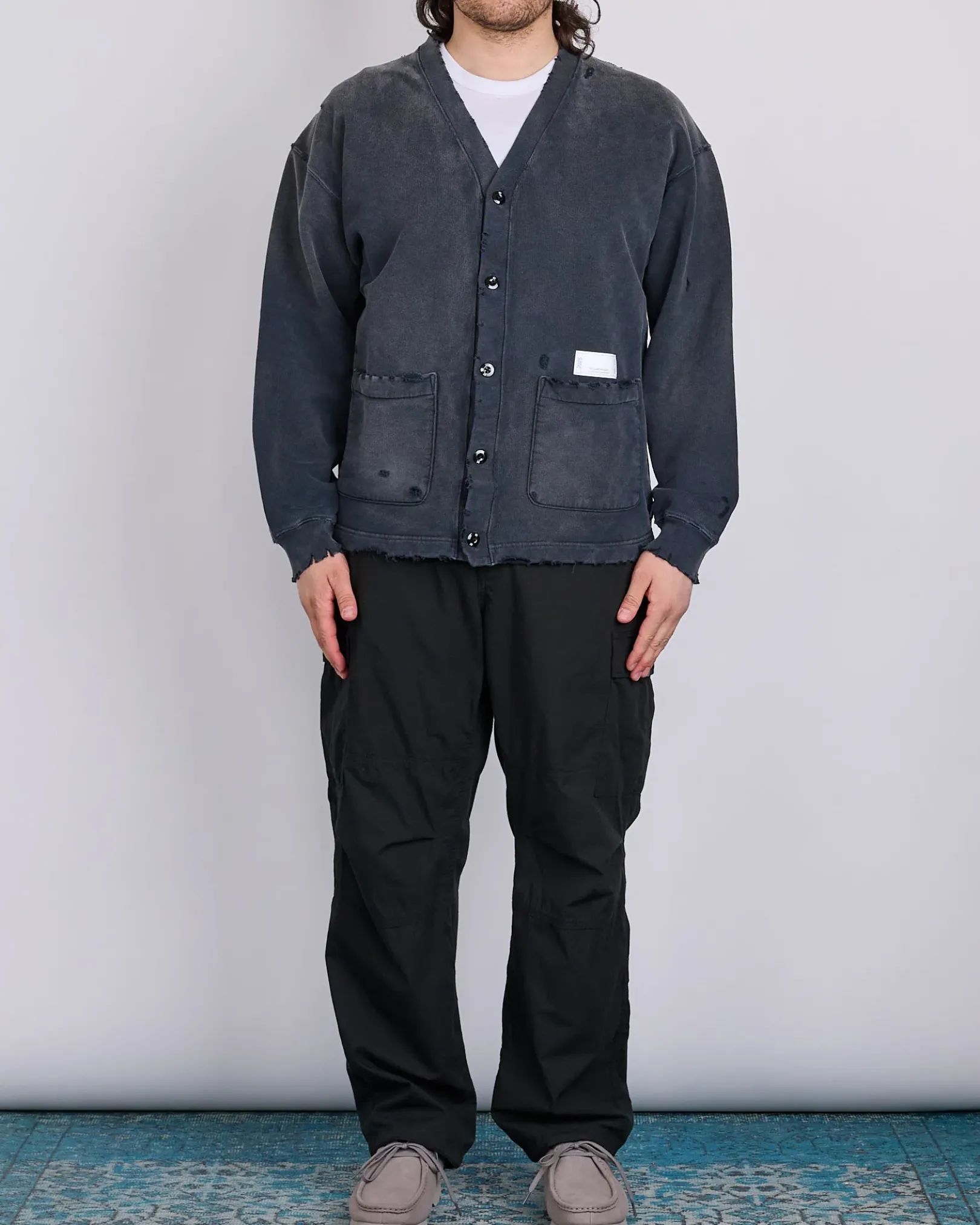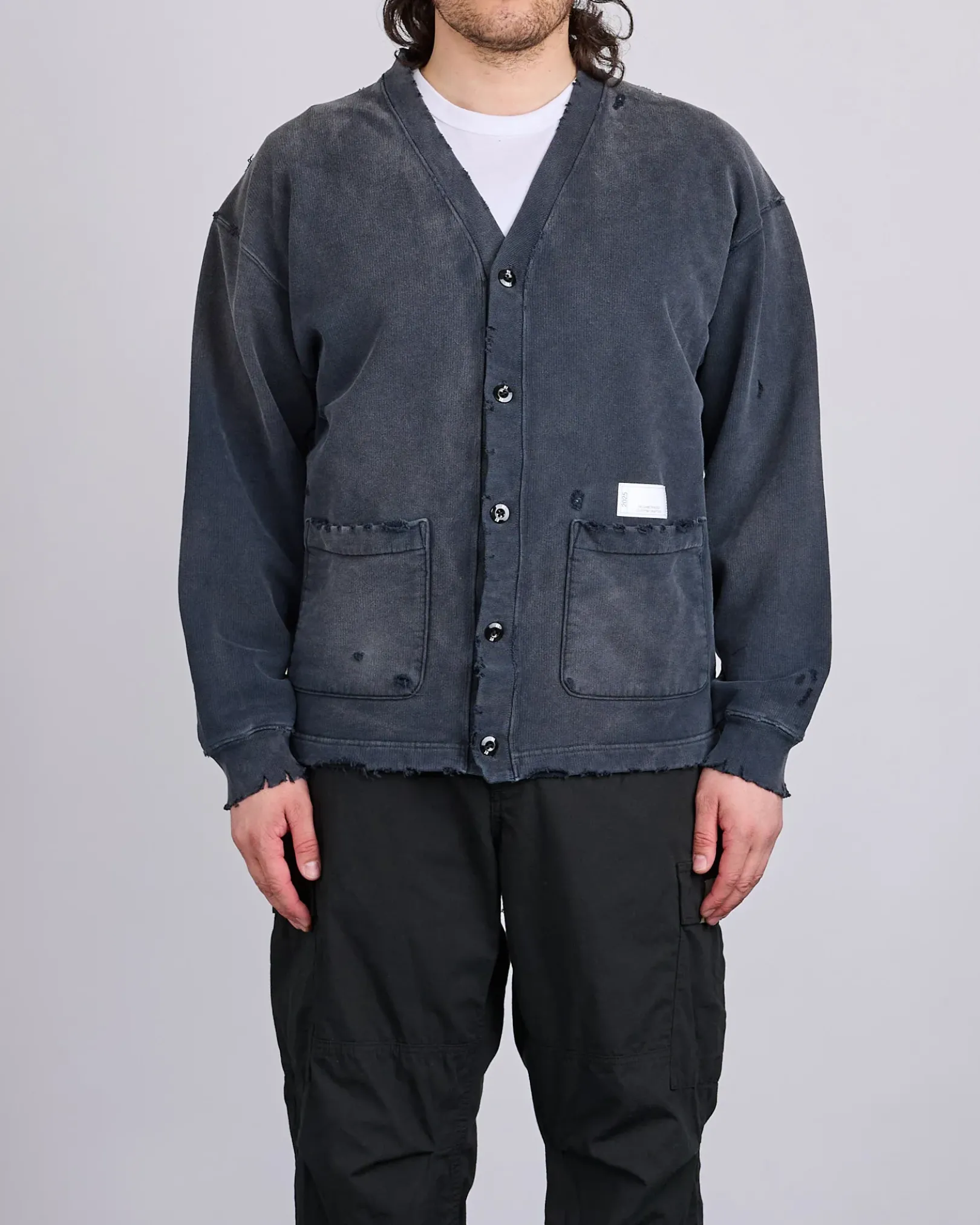 The Savage Cardigan Sweatshirt from Neighborhood is crafted from a faded, medium-weight lined cotton fabric and treated with a composite process of color fading, bleaching, and distressing to achieve a realistic vintage aesthetic. Designed with a button-up front using original four-hole buttons, the piece is finished with a clip tag at the side seam and a custom-crafted size label exclusive to this series.