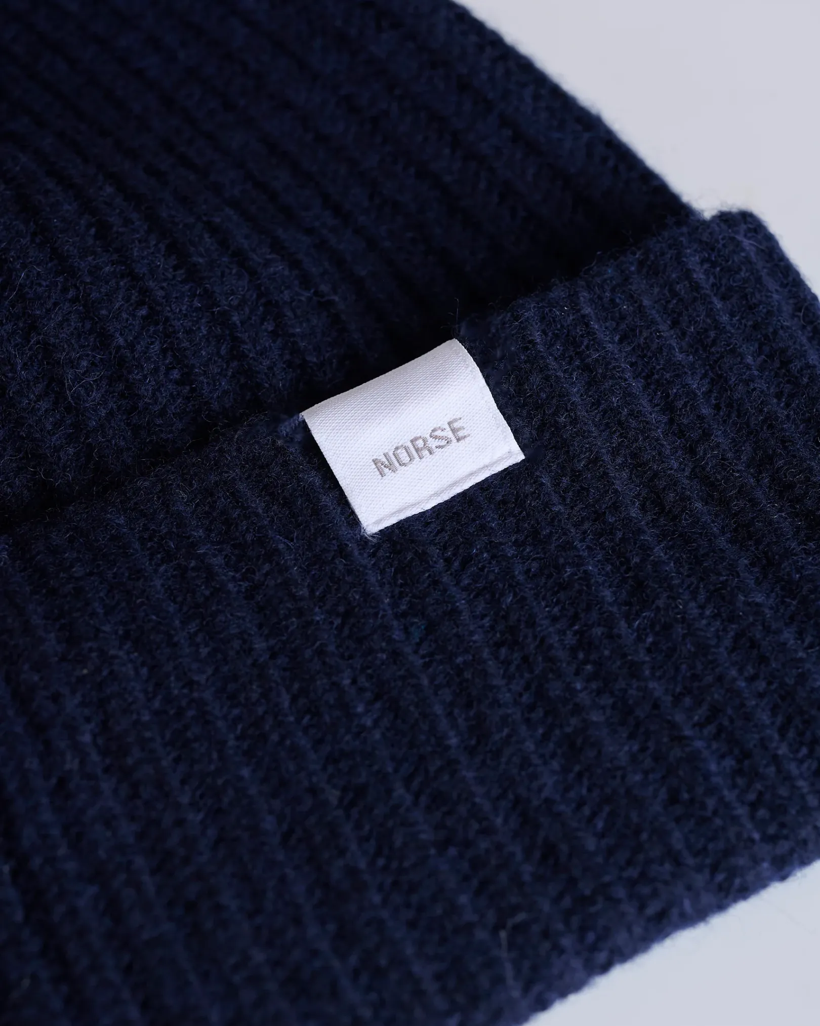 The Norse Standard Beanie is constructed in a 1×1 single rib from 100% merino lambswool. It is constructed using Italian yarn and features a branded Norse tab at the front.