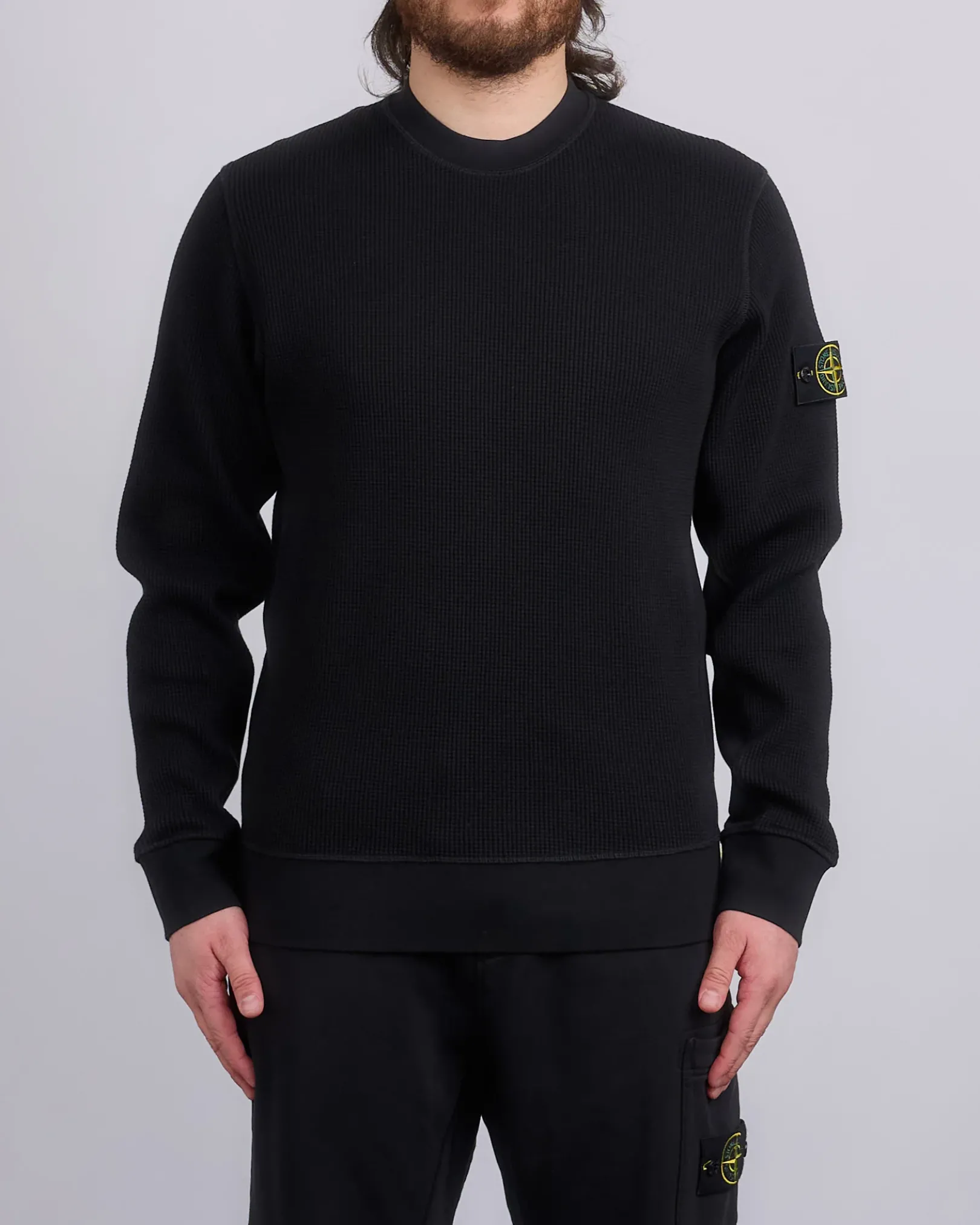 ibbed neckline. Stone Island badge on the left sleeve. Overlock seams. Ribbed inlay on the sides and under the sleeves. Ribbed cuffs and bottom band. Regular fit.