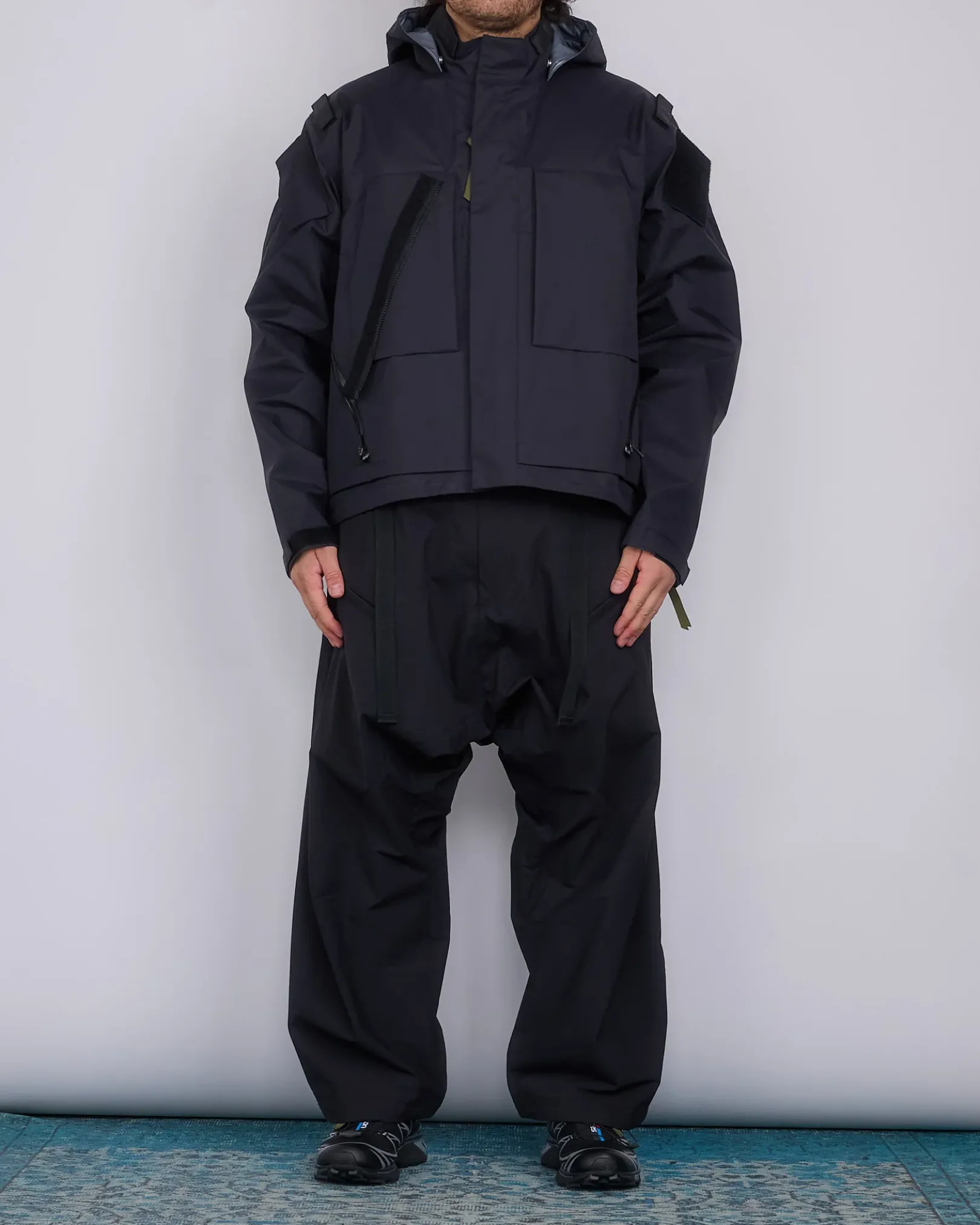P30BL is a silhouette variant of ACRONYM®’s most celebrated wide-spectrum pant. While the fit mechanics remain, the visual stance of the pant has been tweaked; trading the layered 3/4 leg for one with a generous, full-length, adjustable drawcord hem.