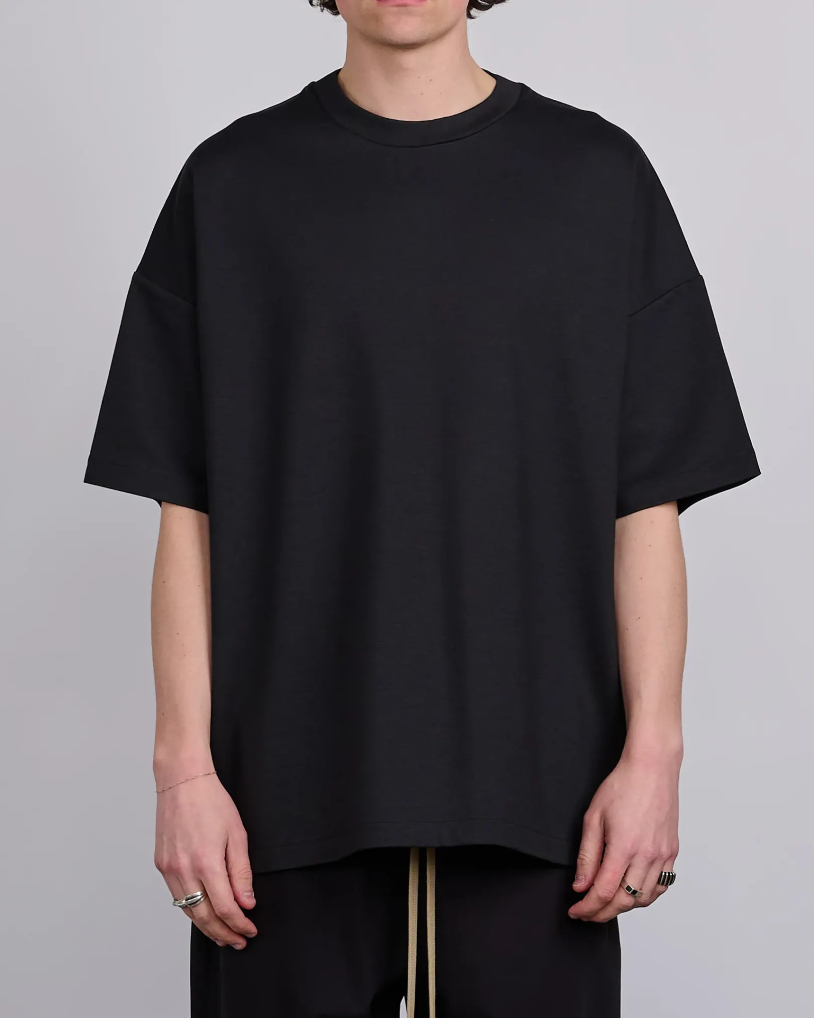 The Short Sleeve Tee is made in Italy from a Milano viscose jersey that combines stretch comfort with formal polish. The crewneck piece features the brand’s signature elements, a relaxed fit with dropped shoulders. A Fear of God label is stitched at the back collar.