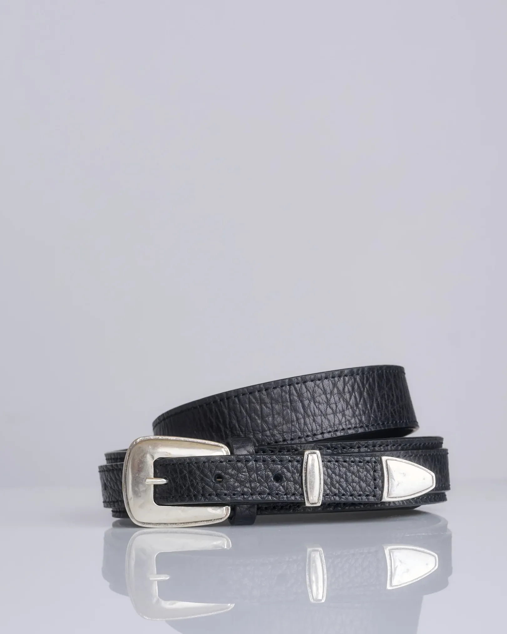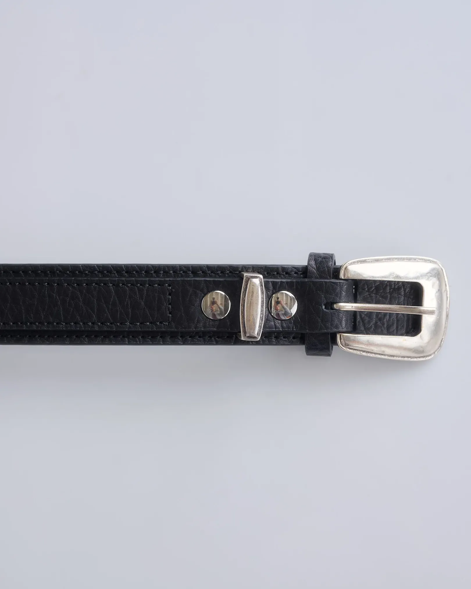 This belt is a recurring accessory in the LEMAIRE vestiaire. It is made of soft cow leather and features a double-closure system, a snap, stud details and a removable buckle.