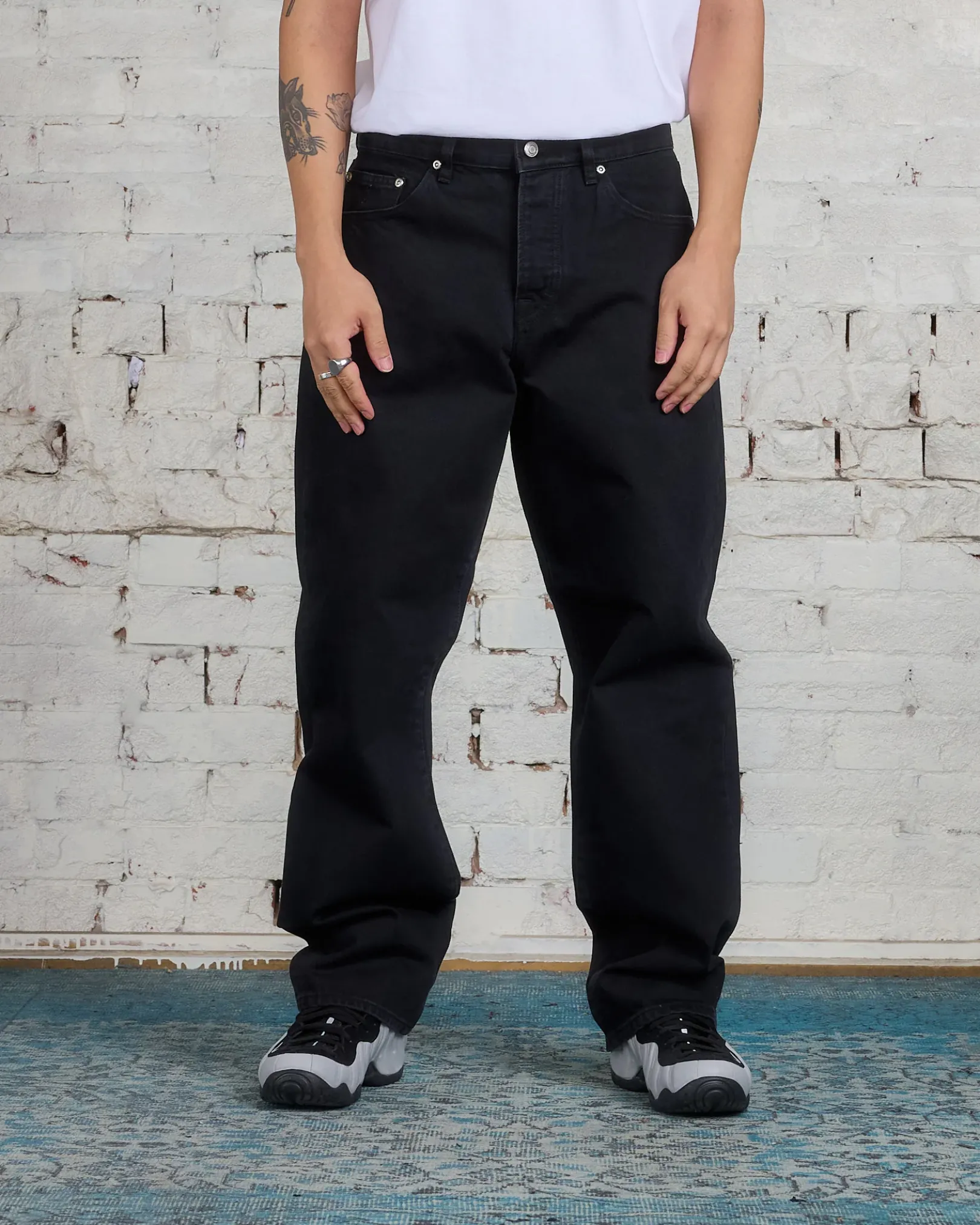 Baggy jean in 14.5oz cotton denim. Oversized waist with a relaxed rise and roomy thigh that tapers to the cuff. Features branded nickel shank hardware and a suede Stüssy logo patch. Size down for a true-to-size fit in the waist, or order your normal size for a baggier fit.