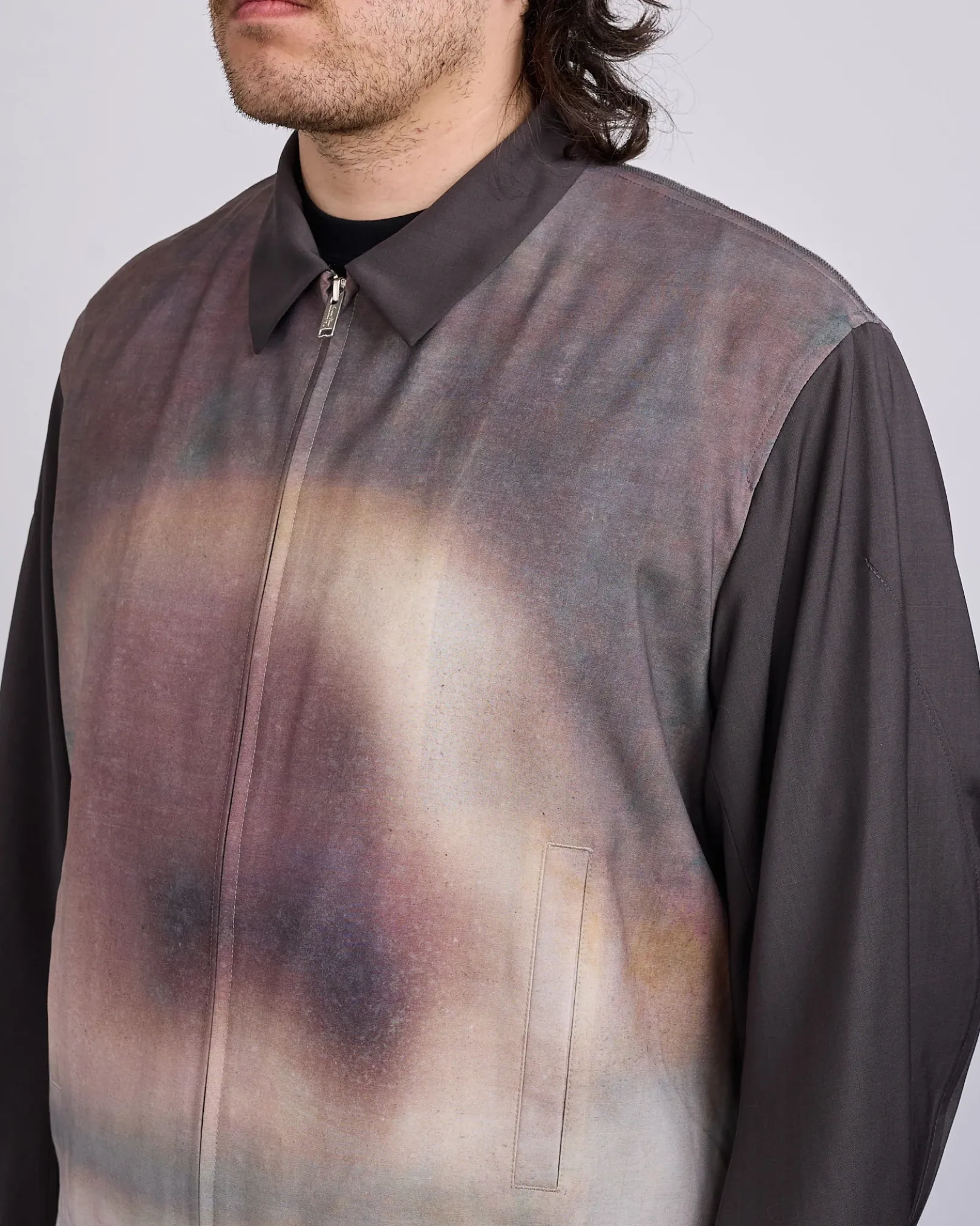 Part of UNDERCOVER’s collaboration with painter Robert Bosisio, the Wool Bosisio Crop Jacket is a tailored blouson featuring an all-over printed wool shell with one of Bosisio’s signature artworks. Cut with a cropped silhouette, it includes a front welt pocket and is fully lined in smooth cupro for comfort and ease. A refined blend of contemporary art and sophisticated construction.