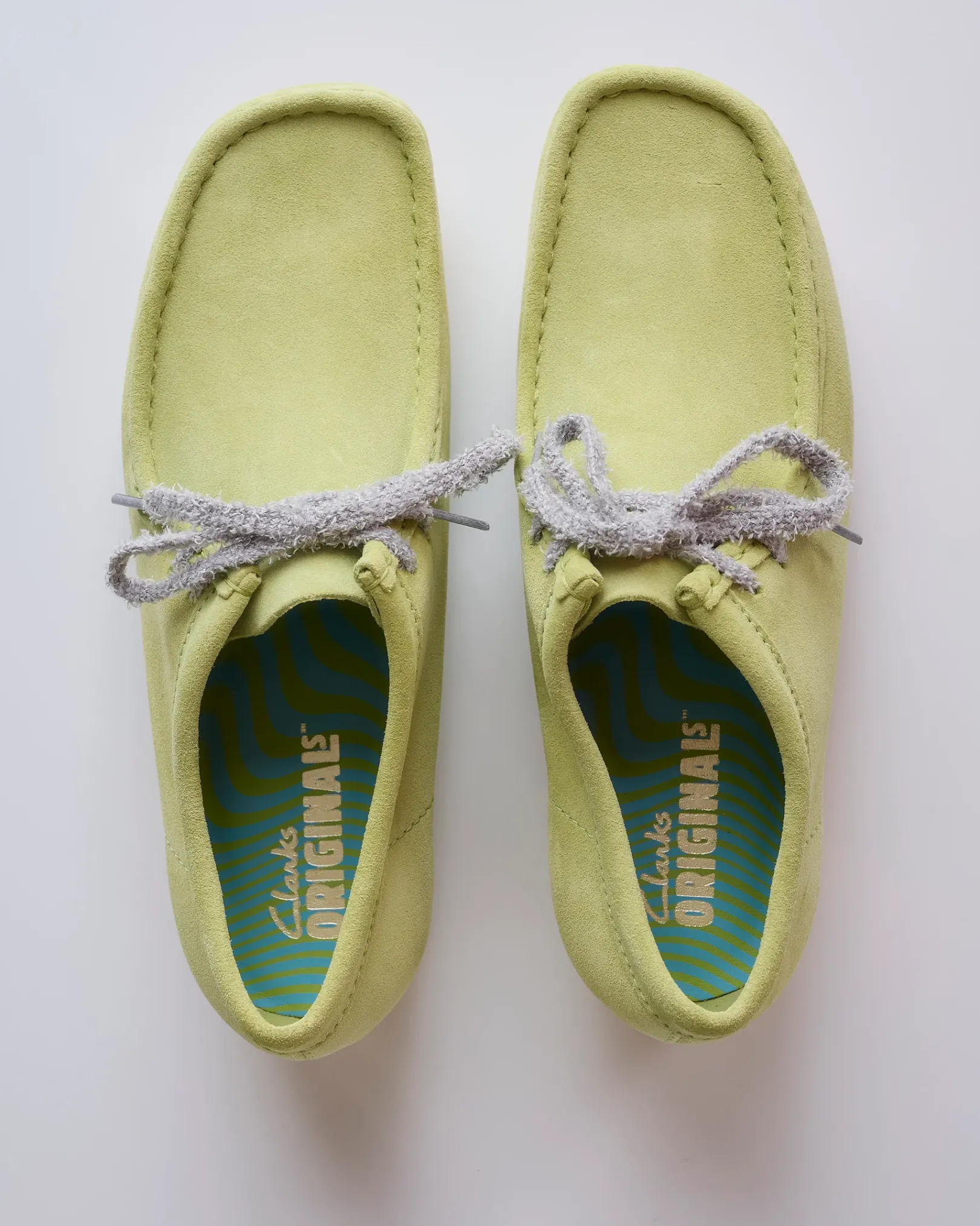 High-energy colorways and a splash of print inspire our new iteration of the Wallabee. Crafted from pale lime suede for a premium look and feel, Clarks’ perfectly proportioned crepe sole is left natural – while tonal and printed fobs prove it’s all in the details.