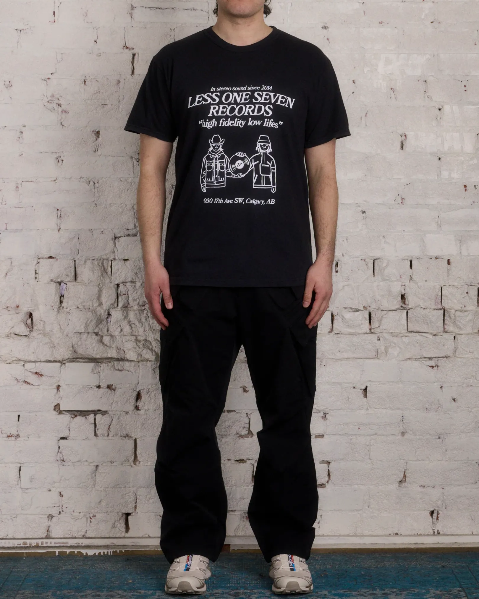 Regular fit t-shirt with seasonal “High Fidelity” graphic which draws inspiration from a few of our favourite pieces available at LESS 17: the visvim® 101 denim jacket and ACRONYM® J1A-GT shell.
