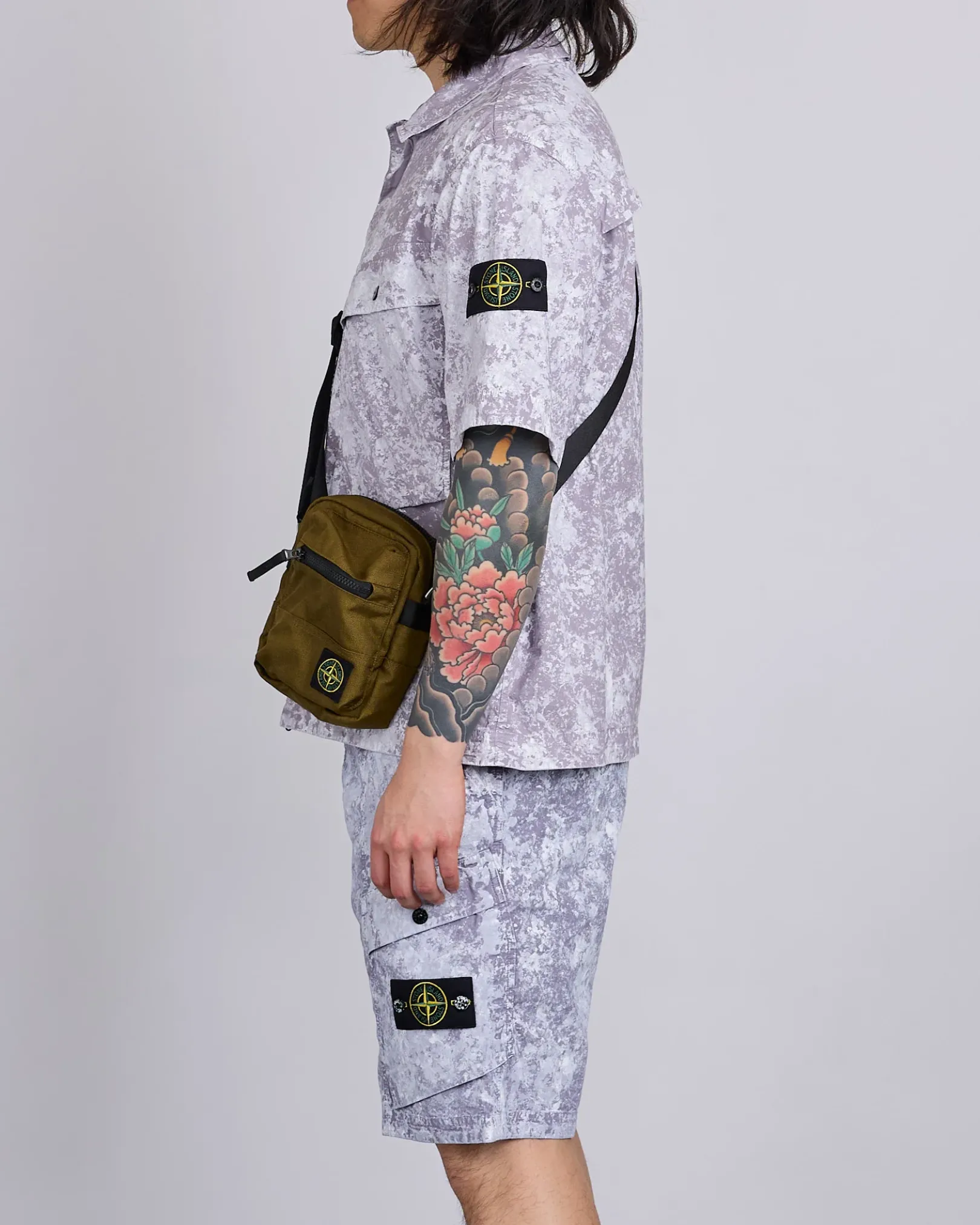 Front bellows pocket with horizontal zipper fastening featuring Stone Island Compass logo patch. Horizontal pocket inside with zipper fastening. Top zipper fastening. Adjustable nylon shoulder strap to be worn either on the shoulder or across the body.