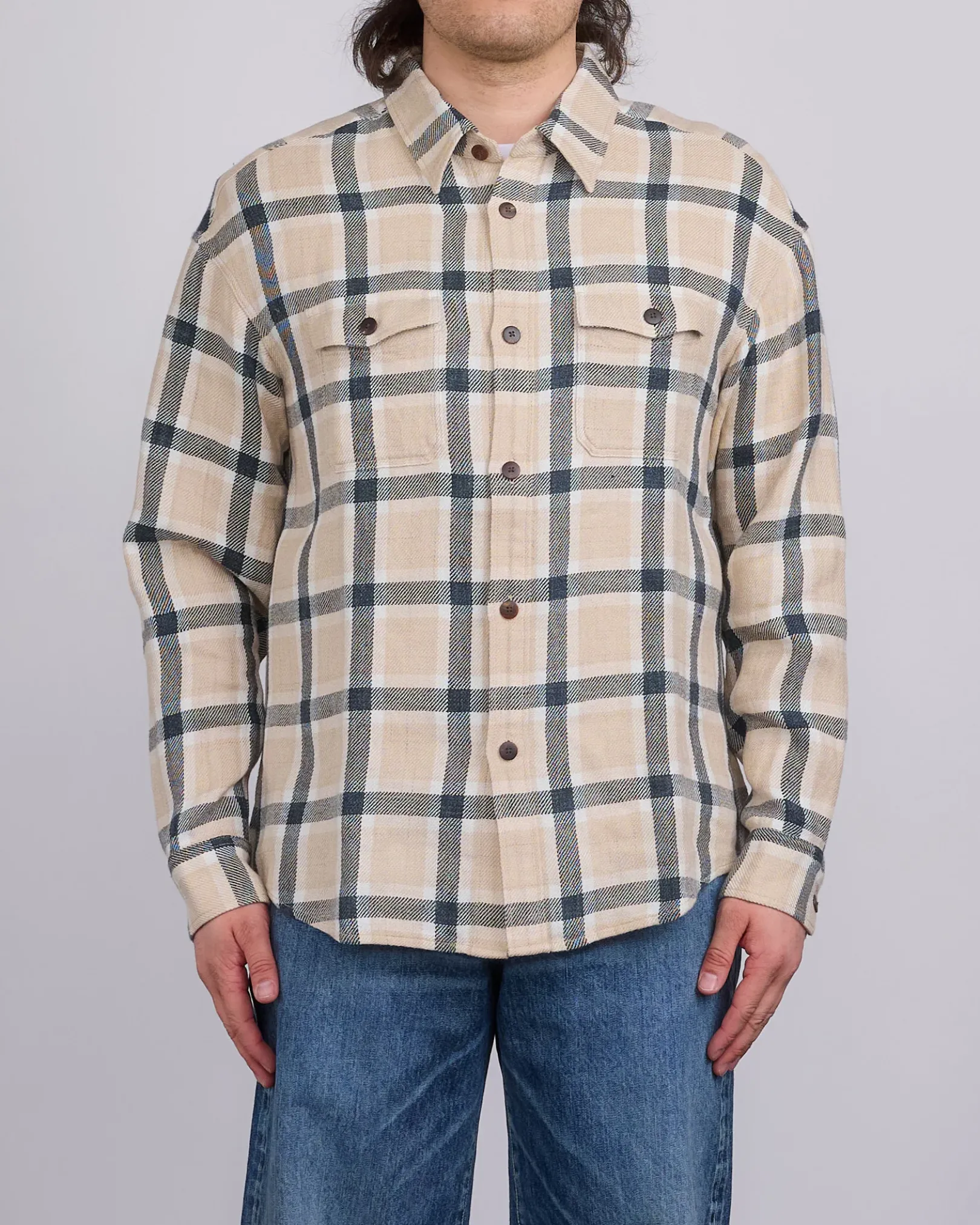 The Lumber Check Long Sleeve is crafted from a custom check twill wool-linen blend, offering a unique balance of texture and breathability. Designed for a relaxed, oversized fit, this long-sleeve shirt has been one-washed for a softer feel and lived-in character. Custom water buffalo buttons add a refined finishing touch, staying true to visvim®’s commitment to quality craftsmanship.