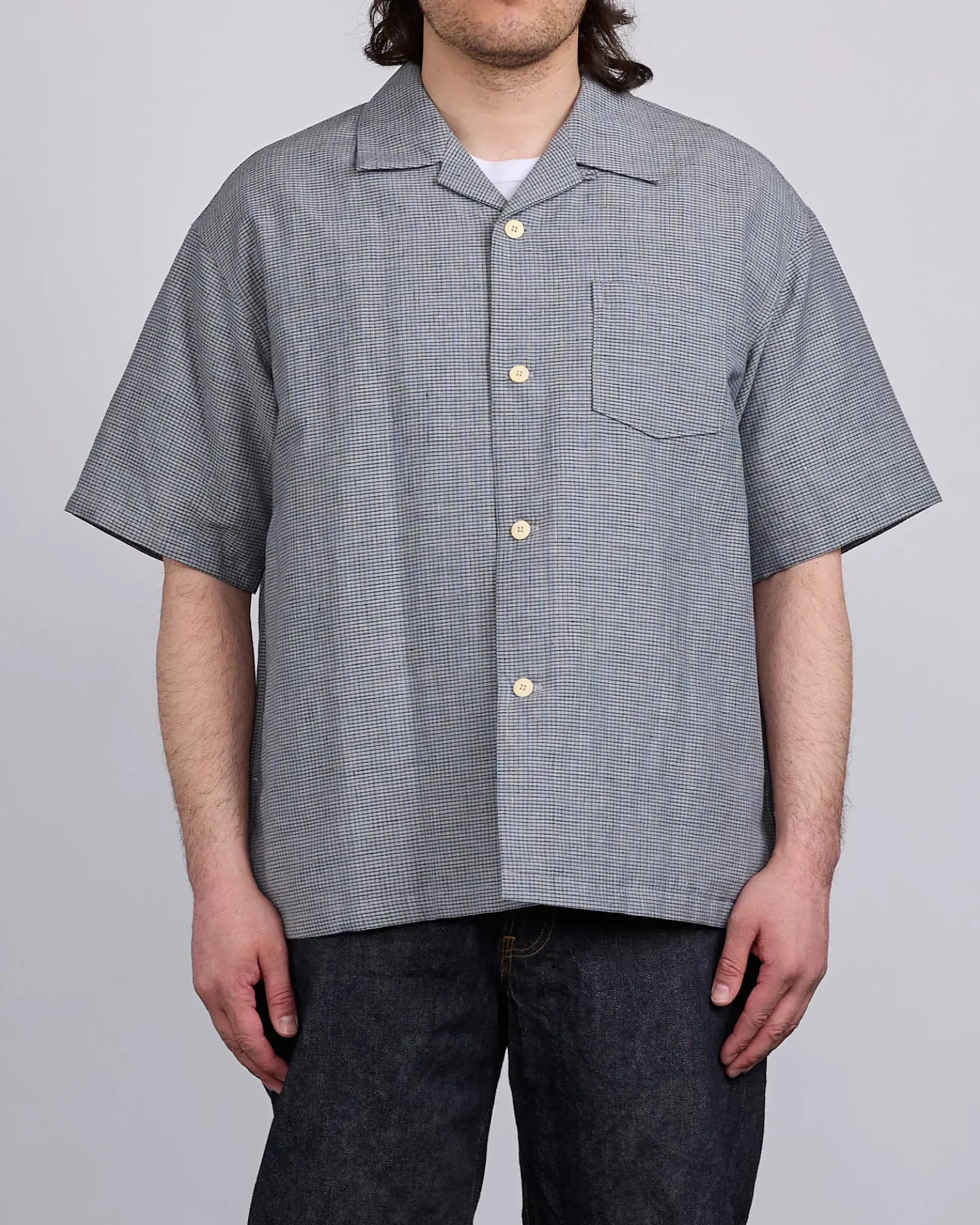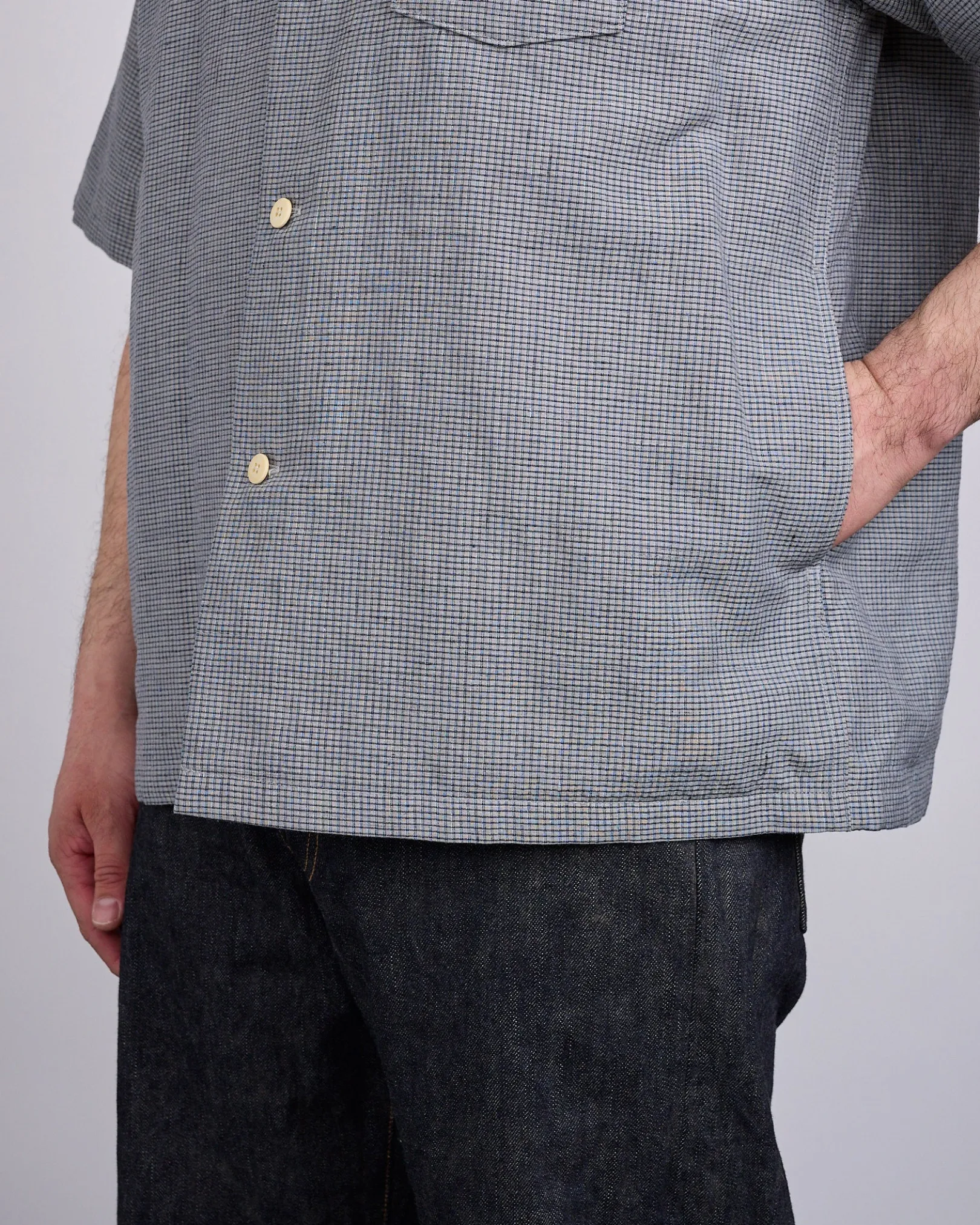 The visvim Wallis Down Button Shirt S/S in Santome Grey is a unique fusion of traditional craftsmanship and modern utility. Constructed from visvim’s original Santome fabric, a wool-linen blend inspired by traditional Japanese textiles, this short sleeve shirt is insulated with white goose down for lightweight warmth. It features a one-wash treatment for a lived-in feel and is finished with custom water buffalo buttons for an added touch of refinement.
