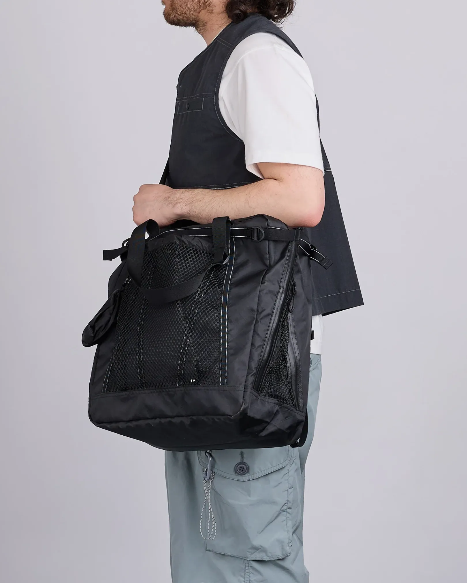 Crafted from ECOPAK fabric, the and wander 3-Way Bag is a versatile carry solution made from 100% recycled polyester with a fluorine-free water-repellent finish and an impressive 20,000 mm water pressure resistance. Designed for adaptability, it can be worn as a tote, shoulder bag, or backpack, and features carry handles, shoulder straps, and backpack straps. The main compartment is secured with a zip closure, complemented by two interior zippered pockets, two exterior mesh pockets, a removable pouch, carabiner, and a reflective and wander logo for added visibility.